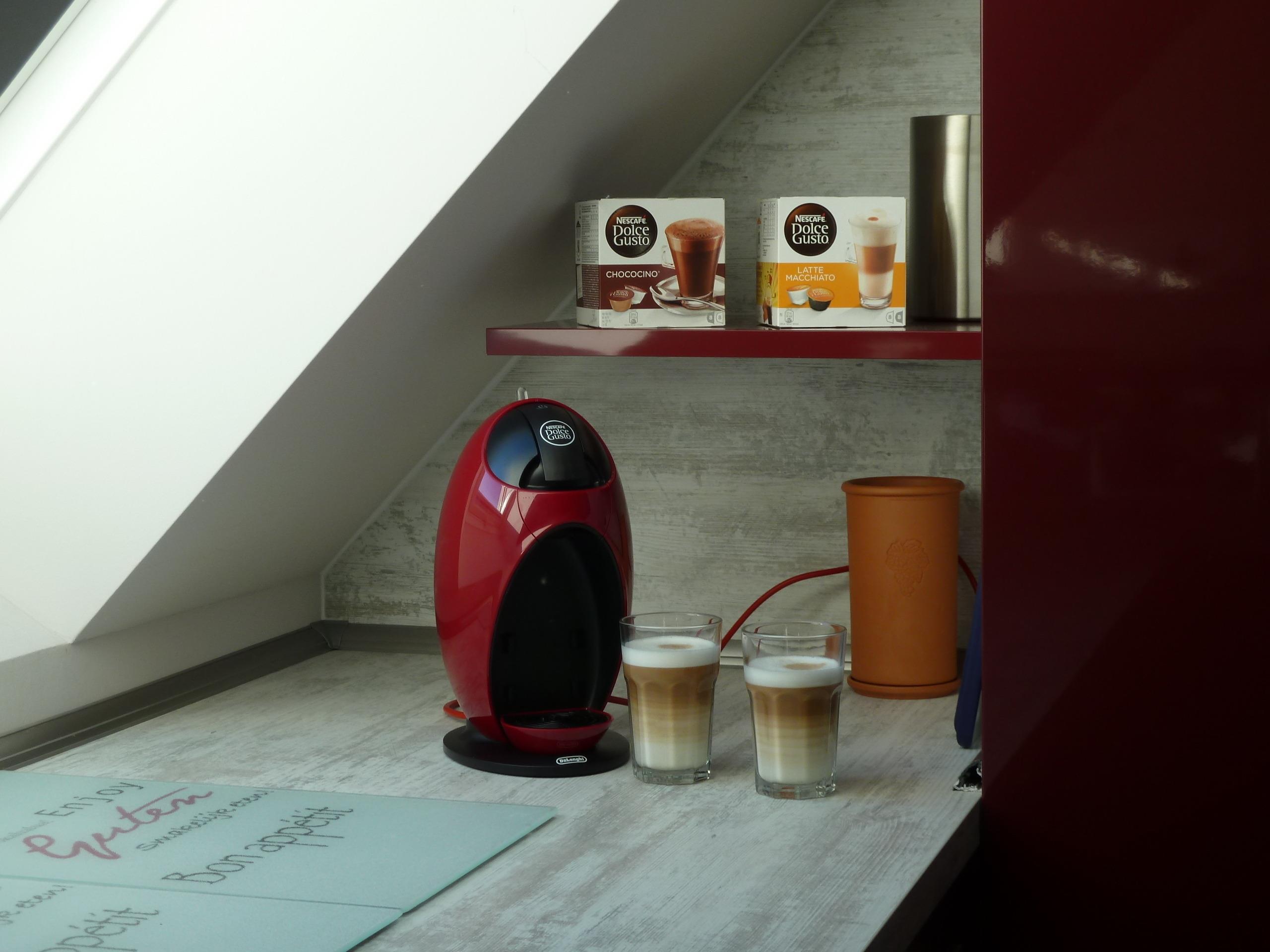 Schlechtes Wetter in Sicht? Dann verwöhnen Sie sich mit einem Latte Macchiato aus der Dolce Gusto Kaffeemaschine und genießen trotzdem den Tag. Eine kleine Auswahl an Bücher, Spiele und DVD's vertreiben die Langeweile.