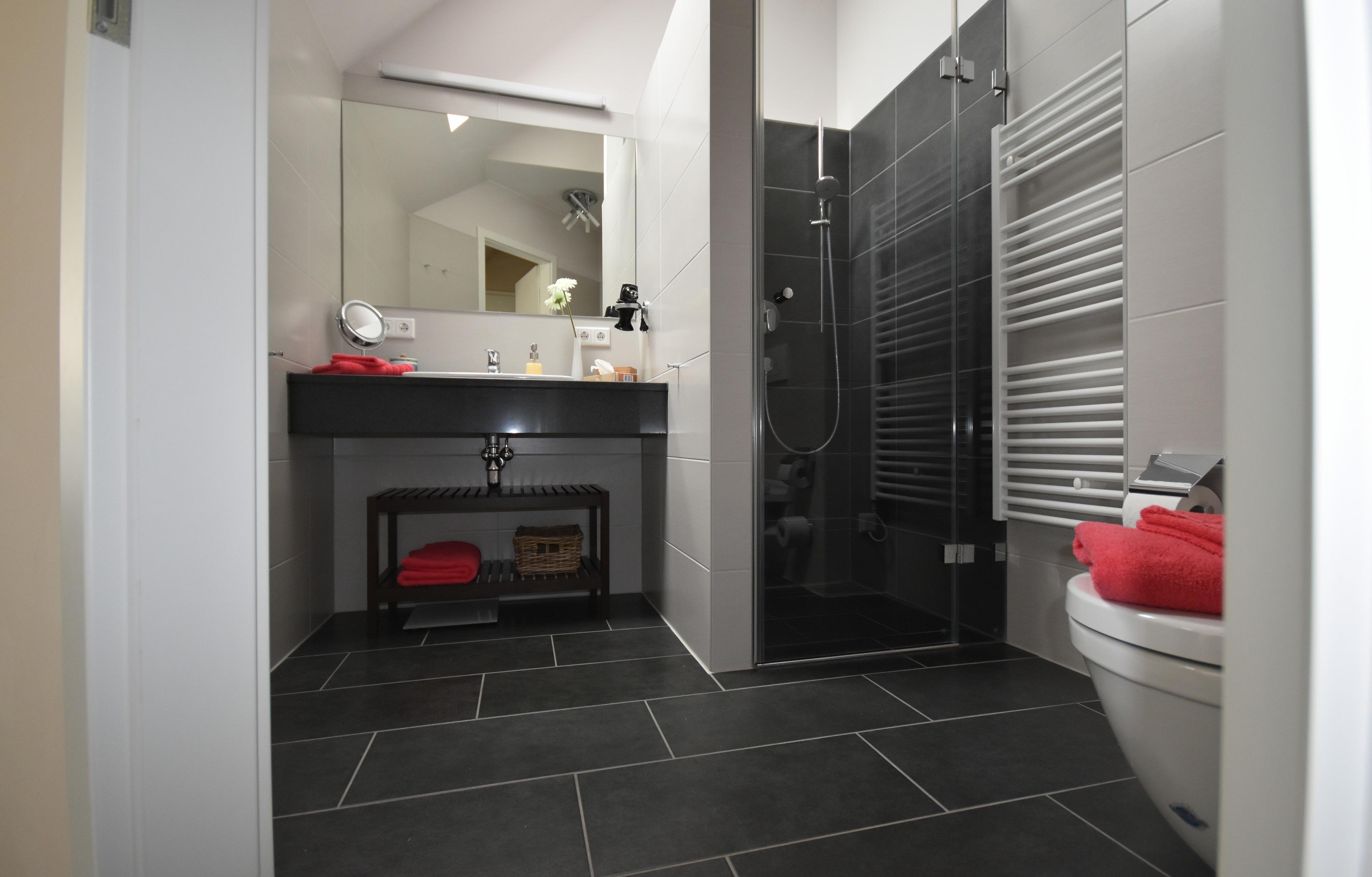 Selbstverständlich ist die Wohnung mit einem modernen Duschbad eingerichtet - Handtuchtrockner, Fön und kleine Extras sorgen für Ihr Wohlbefinden. In der gesamten Wohnung gibt es Fußbodenheizung.