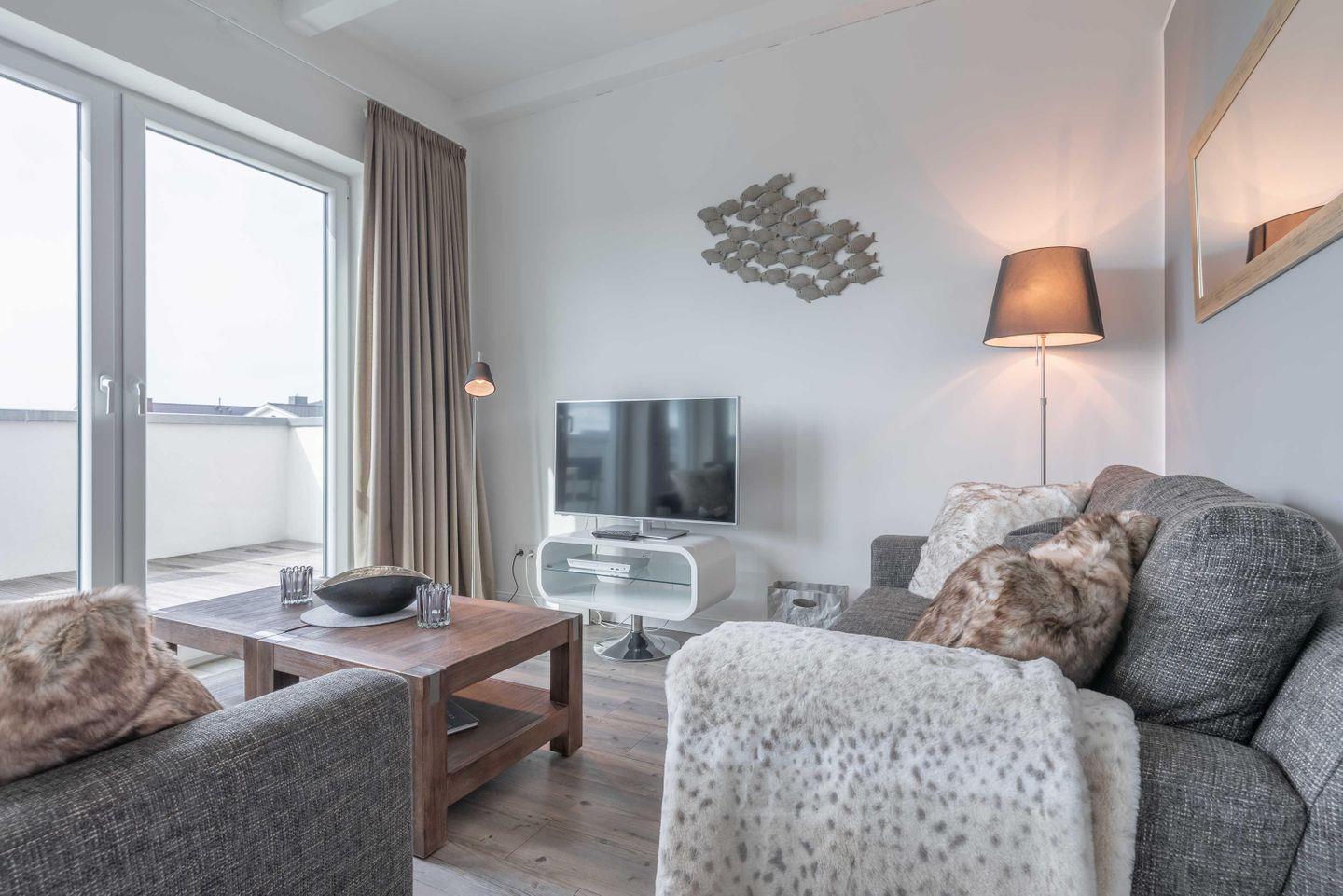 Dachgeschoss der Residenz Seestern. Im Wohnraum finden Sie eine zweiteilige