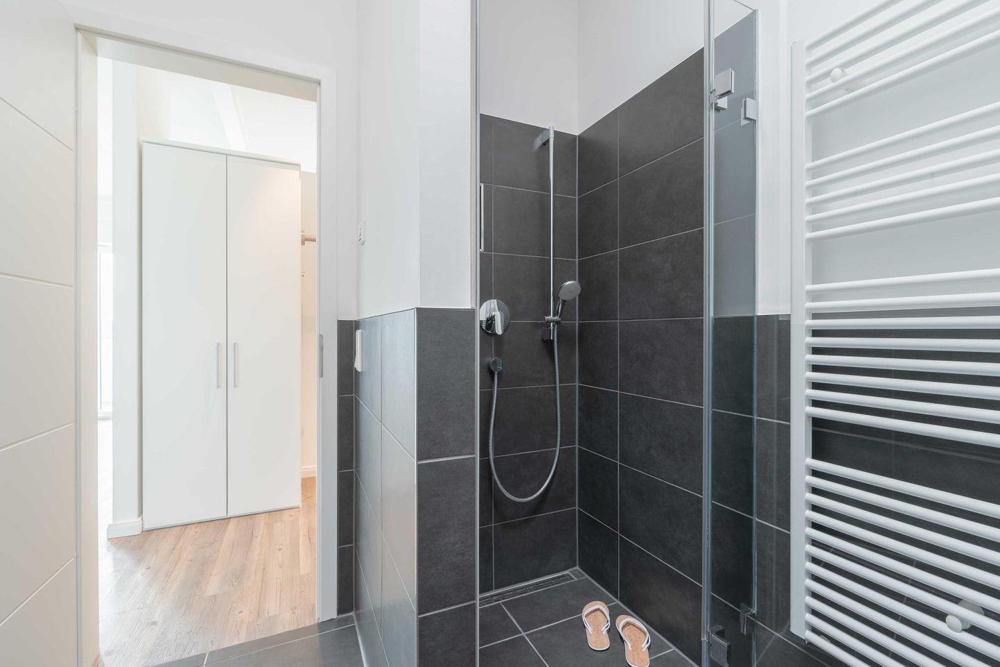 0,90 m) sowie ein kleiner Schrank. Das zweite Duschbad ist vom Flur aus zu