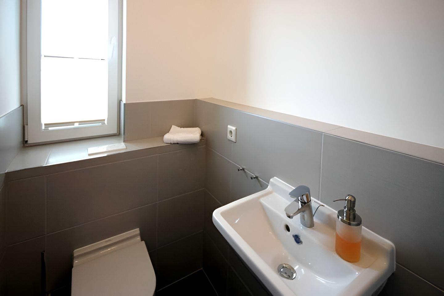 Breite des Waschtischs. Zur Wohnung gehören auch ein Gäste-WC und ein