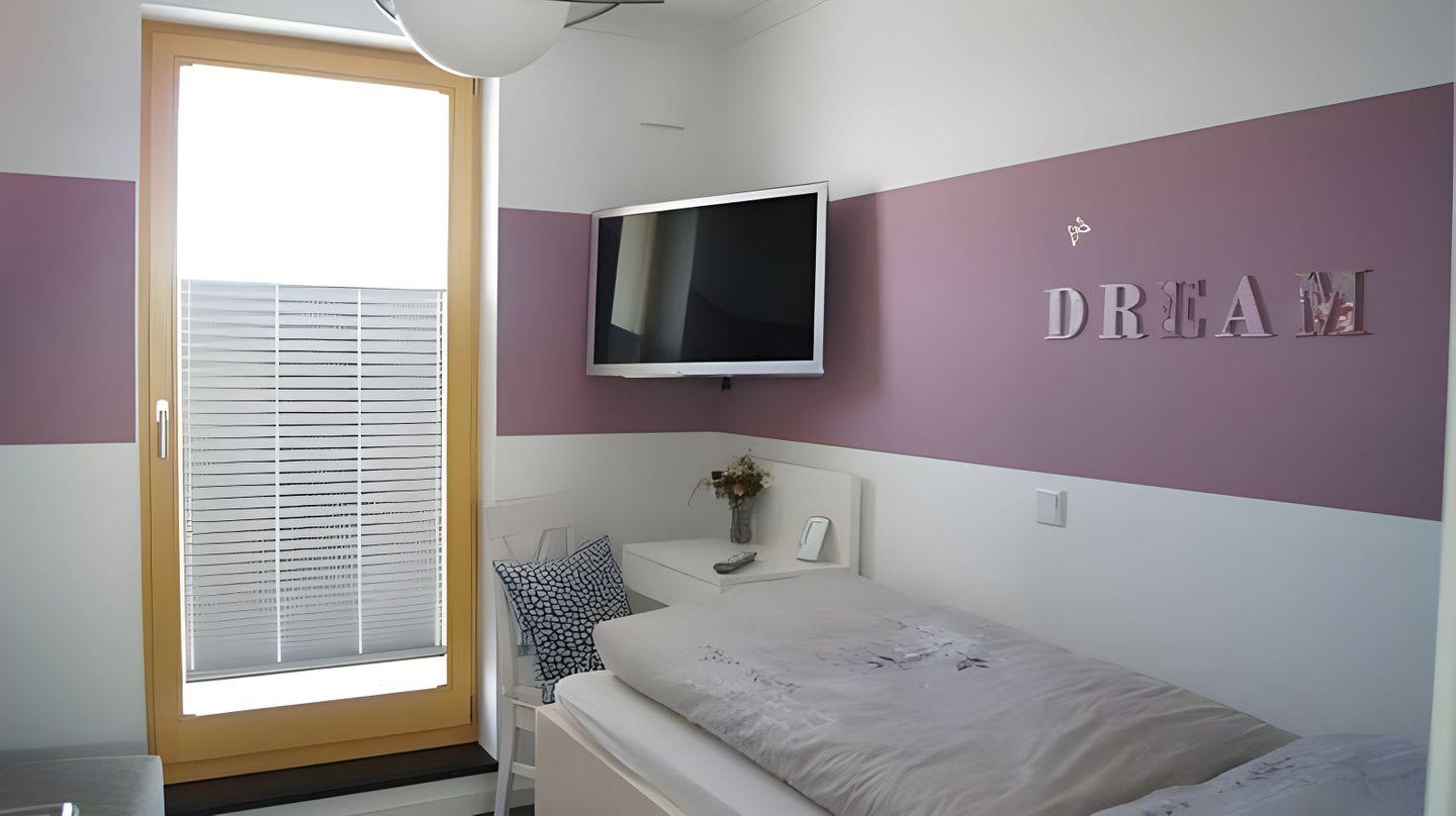 Der ERSTE SCHLAFRAUM bietet durch beruhigende Farbgestaltung einen erholsamen Schlaf im großzügigen Boxspringbett (180 x 200 cm). Der ZWEITE SCHLAFRAUM ist liebevoll mit farblichen Akzenten im Detail gestaltet. Hier finden zwei weitere Personen Schlafmöglichkeiten. Es steht ein Bett und ein Schlafsessel, der mit einer Topper-Matratze bestückt ist; ergänzt den hohen Schlafkomfort in diesem Zimmer. Beide Schlafzimmer haben einen Zugang zur DACHTERRASSE.