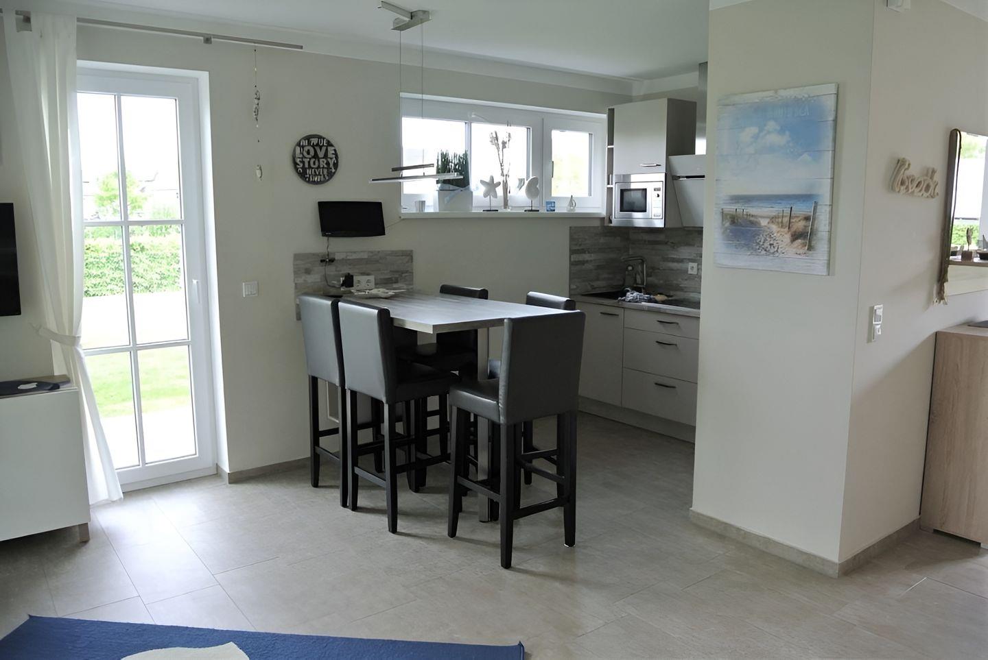 eigenen Wünschen zu kochen. Im Küchenbereich rundet ein Hochtisch inkl. vier