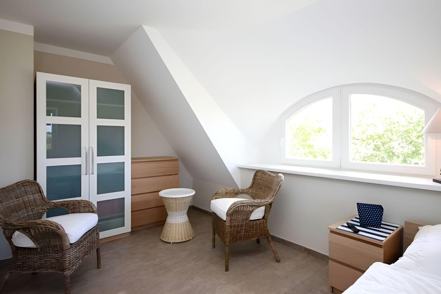 Schlafzimmer sind mit geräumigen Kleiderschränken, Sitzgelegenheiten und