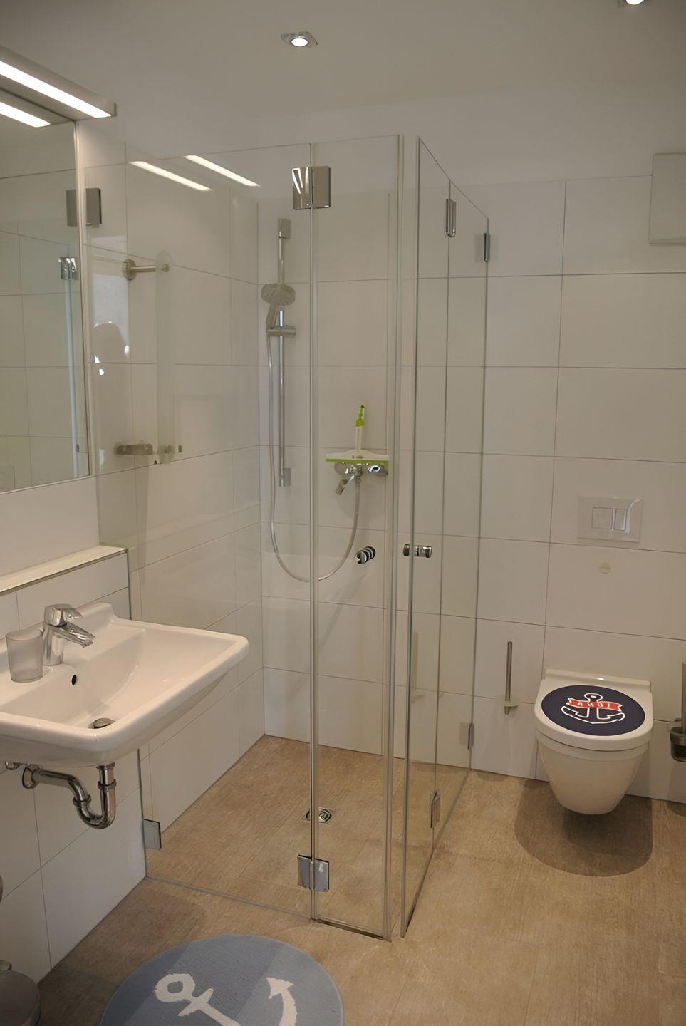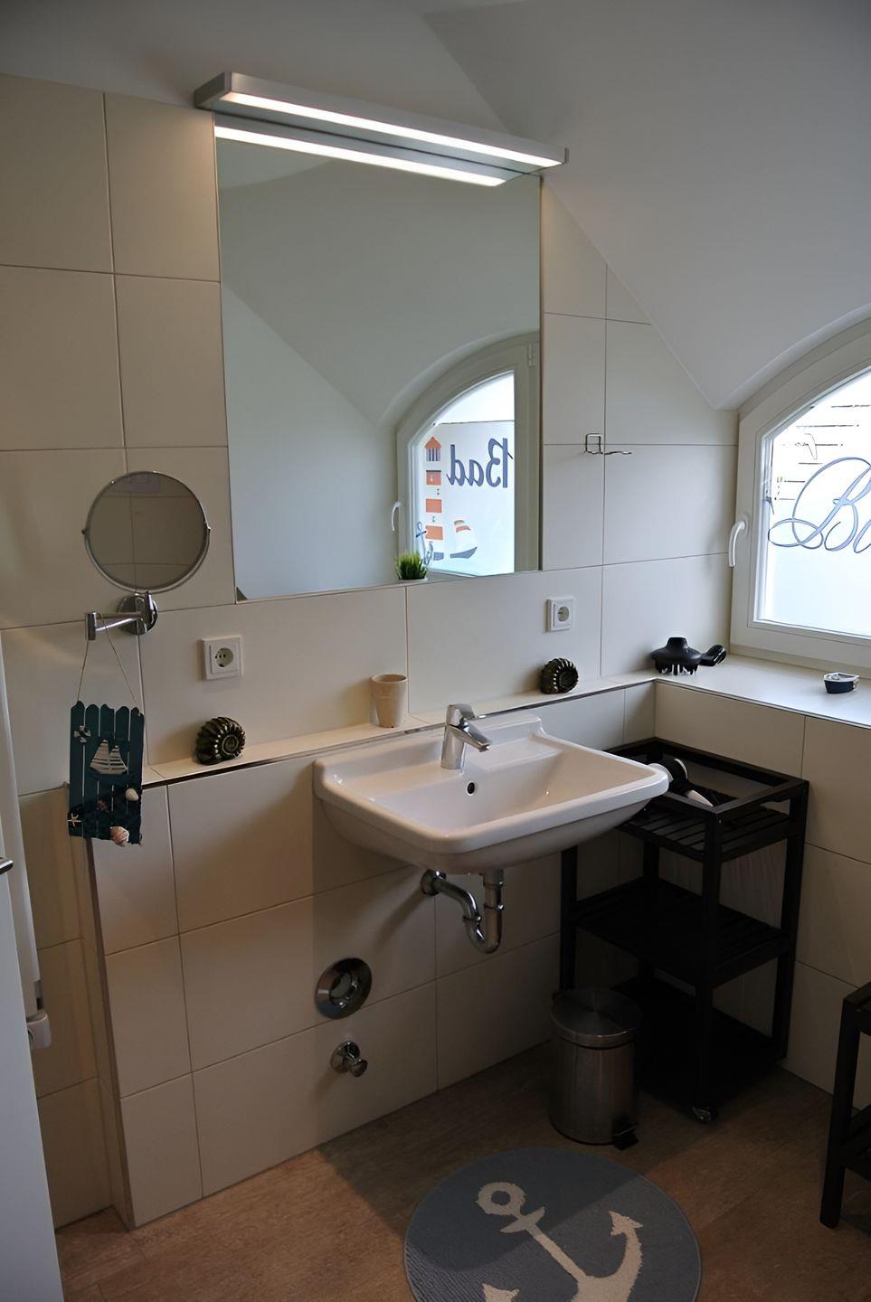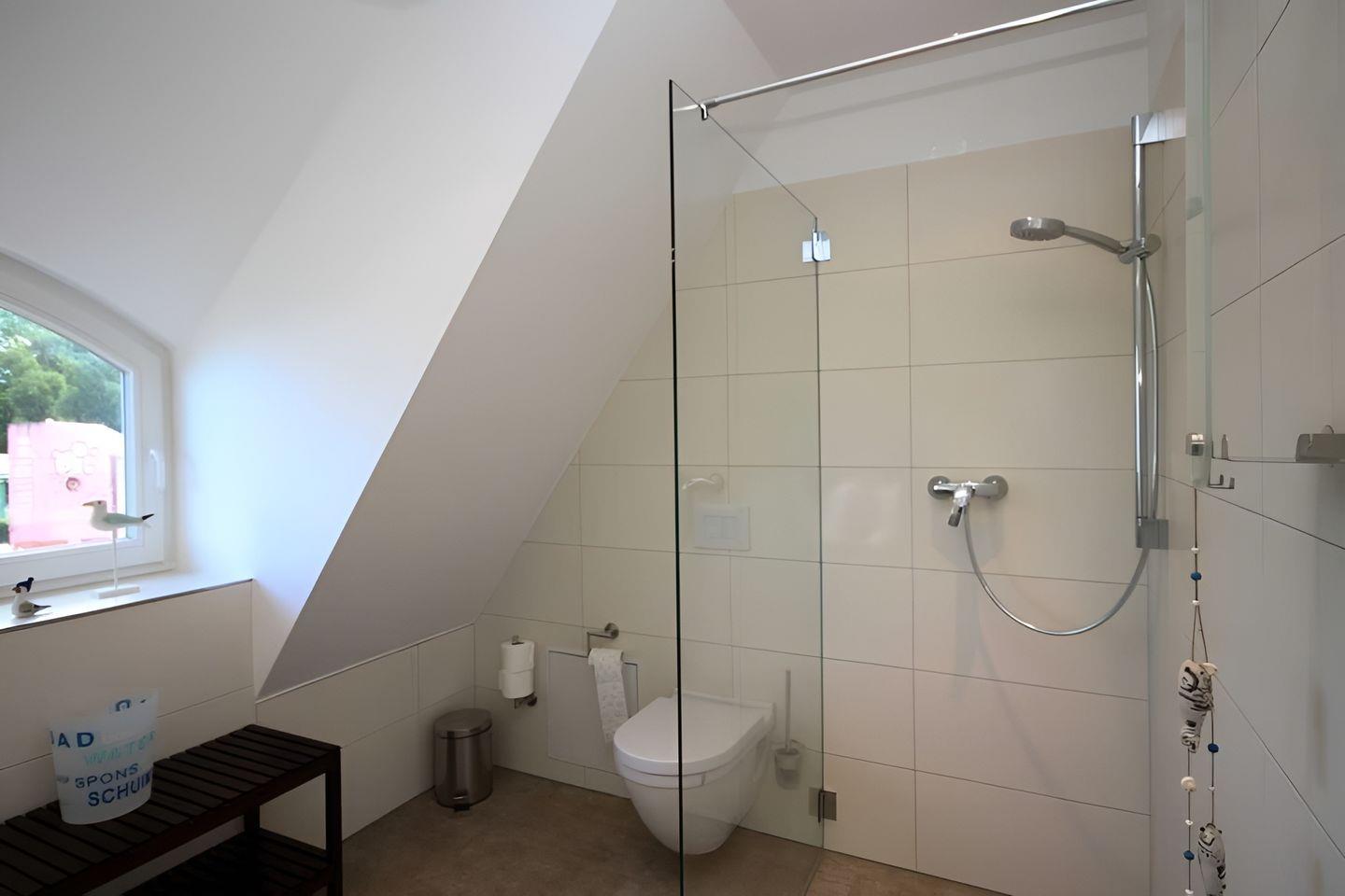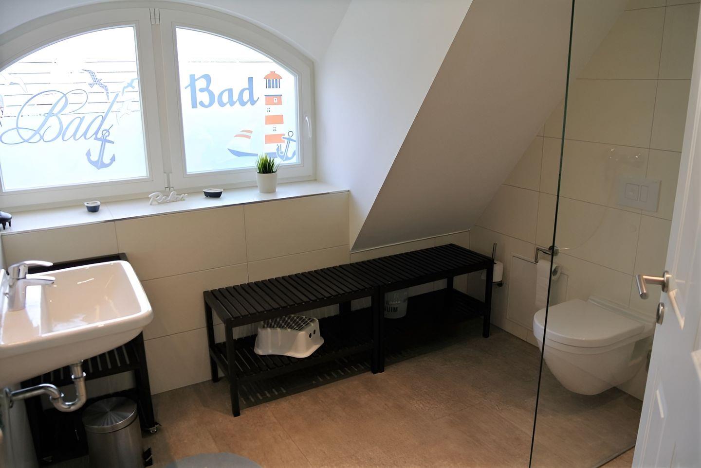 Im Erdgeschoss befindet sich das erste Bad inkl. Dusche, Fön und