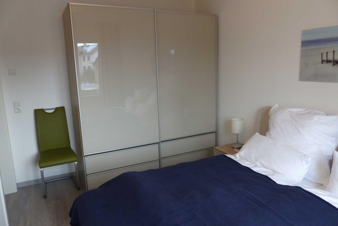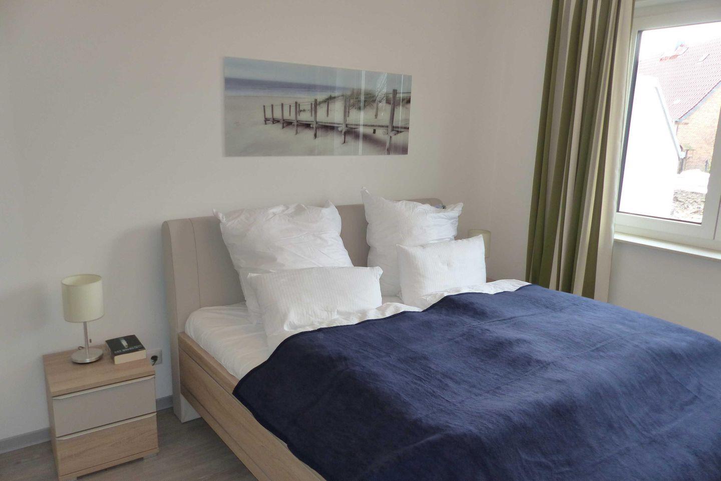 Das größere Schlafzimmer empfängt Sie mit einem gemütlichen Doppelbett. Das