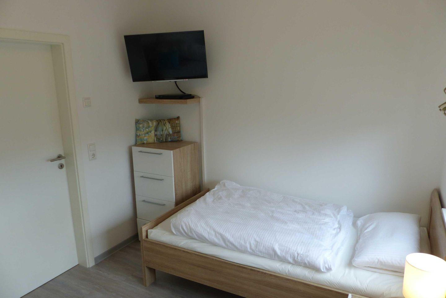 kleinere Zimmer ist mit zwei Einzelbetten und einem Fernseher mit