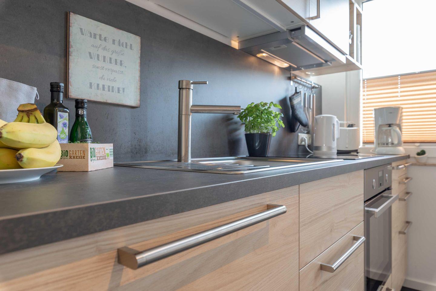 an heißen Tagen für ausreichend kalte Getränke. Im Küchenbereich runden ein