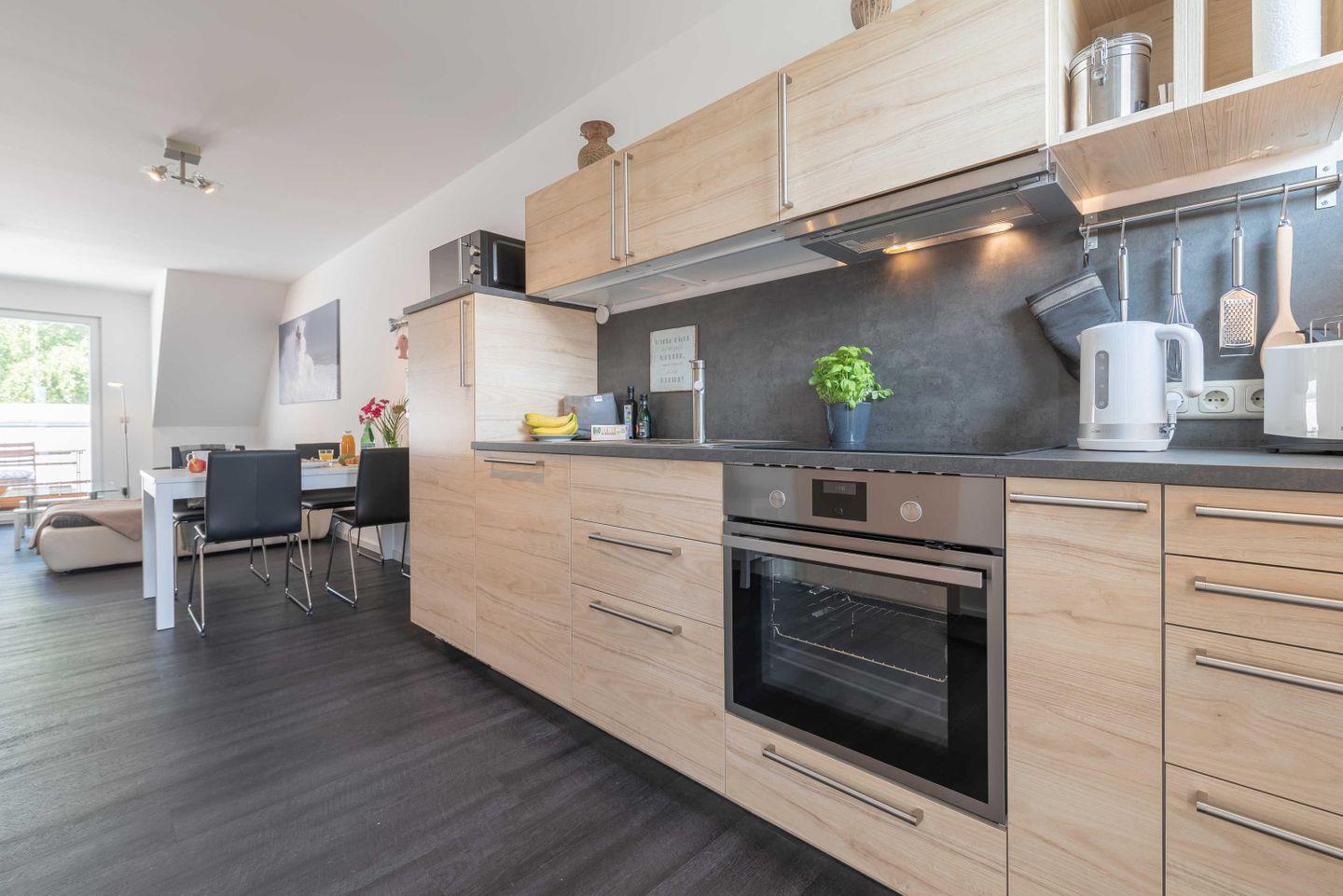 Wasserkocher, Mikrowelle, Cerankochfeld und Backofen. So lässt es sich frisch