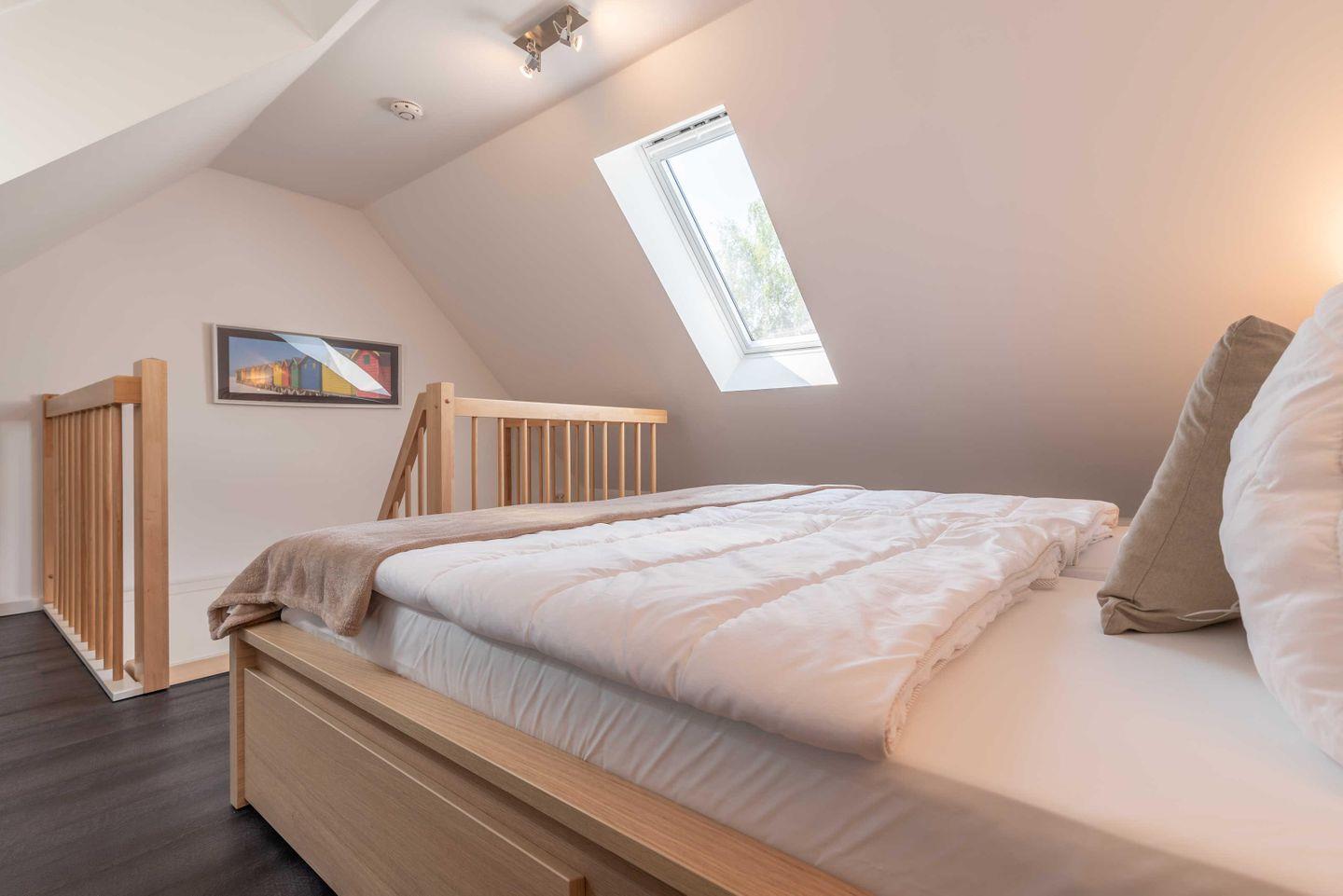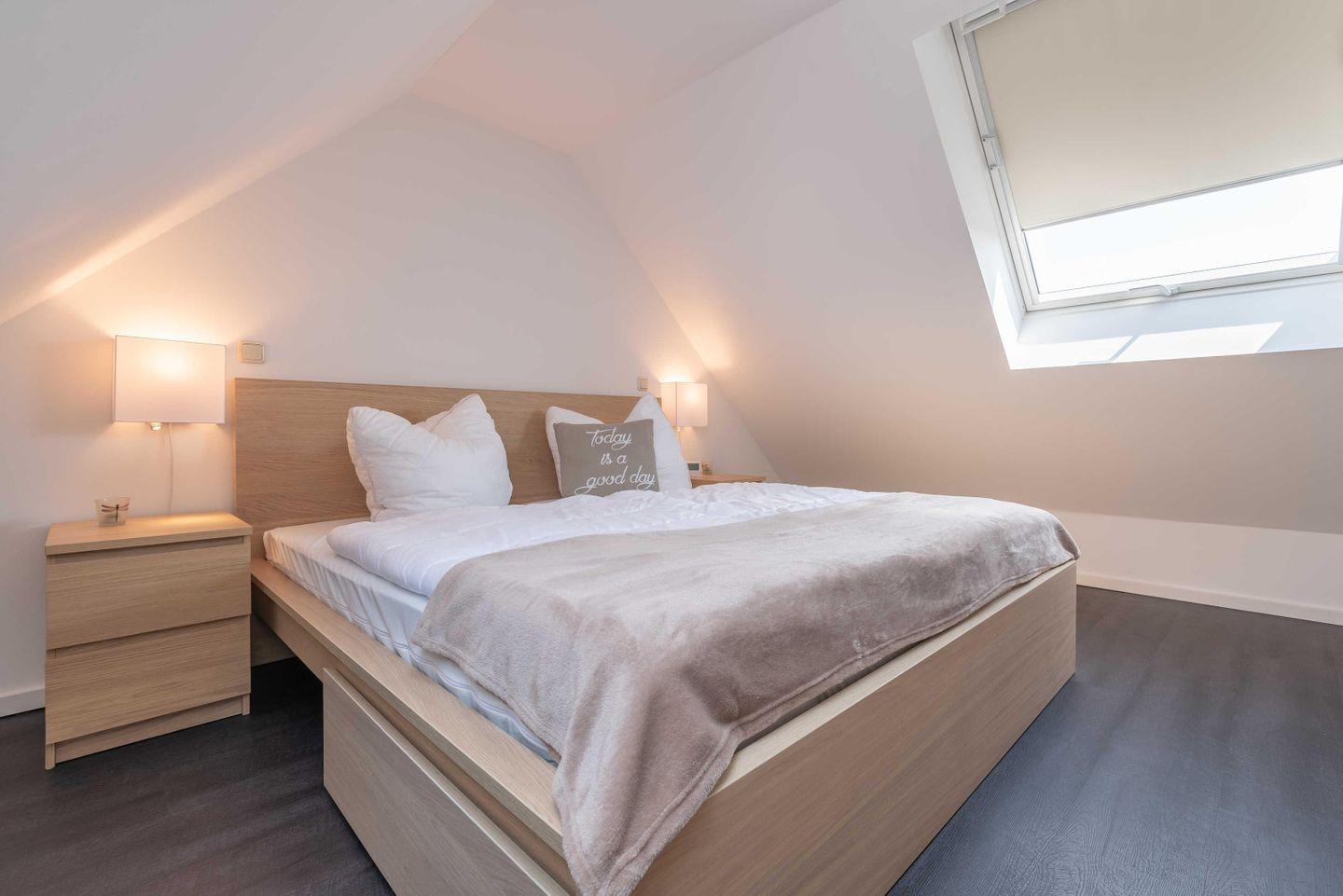 Matratzen) und zwei Nachttischen. Zwei große Dachfenster ermöglichen ein gutes