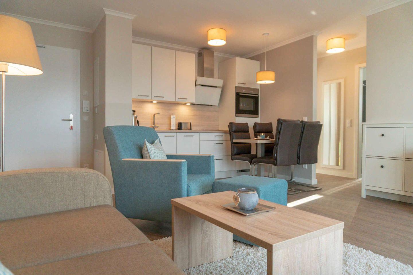 Das ca. 58 m² große Apartment Haus Dünenrose WE 03 „Meerzeit“ in Börgerende bietet zwei Schlafzimmer, einen Balkon, eine moderne, offene Küche mit Spülmaschine und Ceranherd sowie kostenfreies WLAN. Haustiere sind bis zu zwei erlaubt (10€/Nacht pro Haustier, sowie einmalig Haustierendreinigung in Höhe von 25€). Ein Privatparkplatz steht zur Verfügung. Der Strand ist nur 300 Meter entfernt.