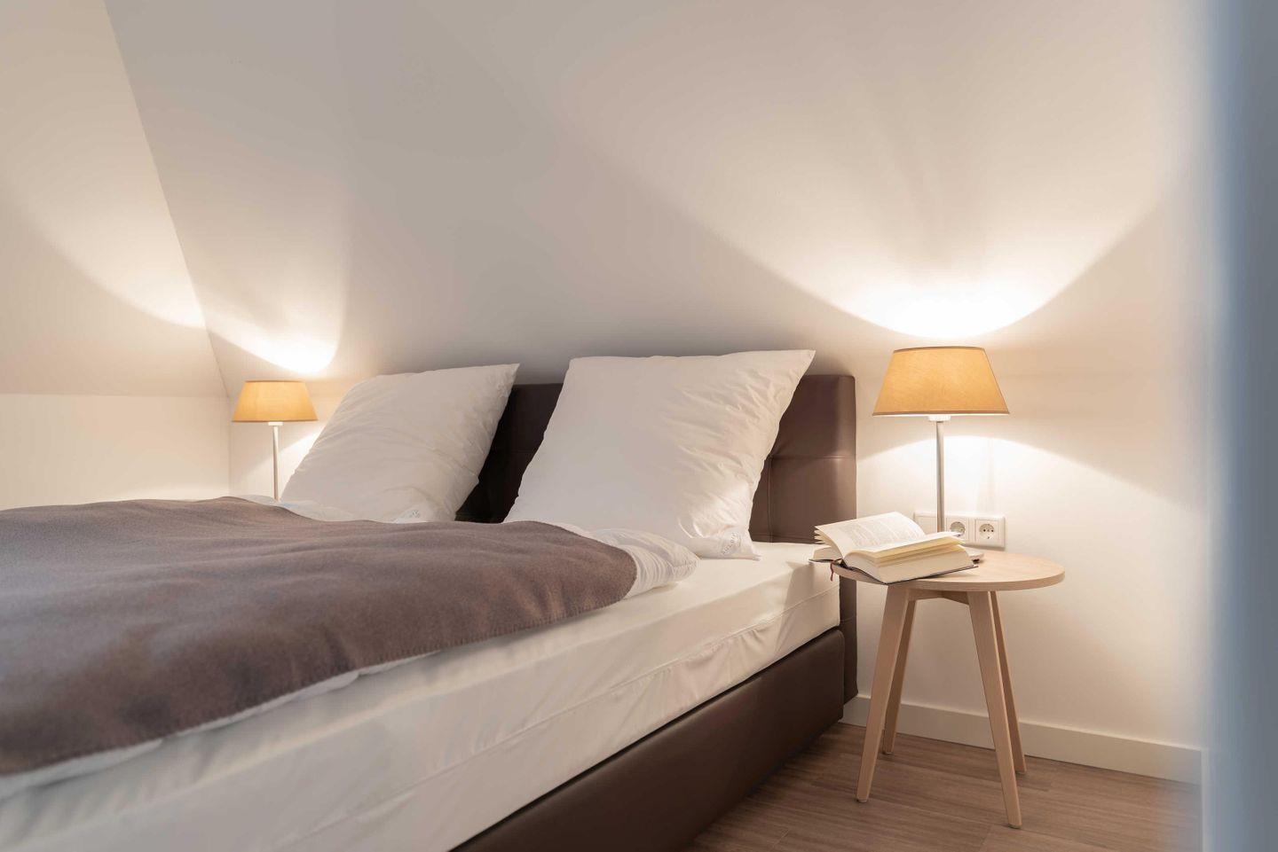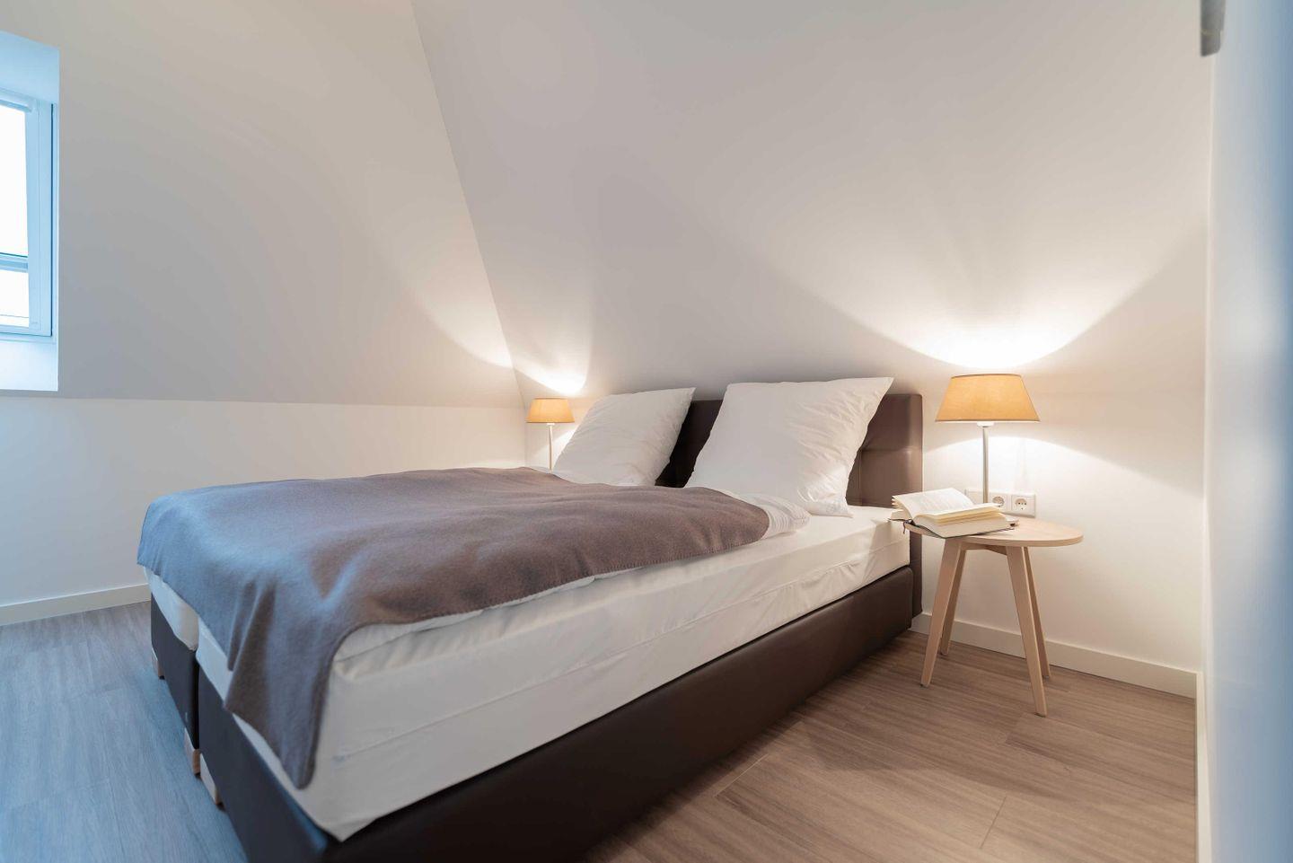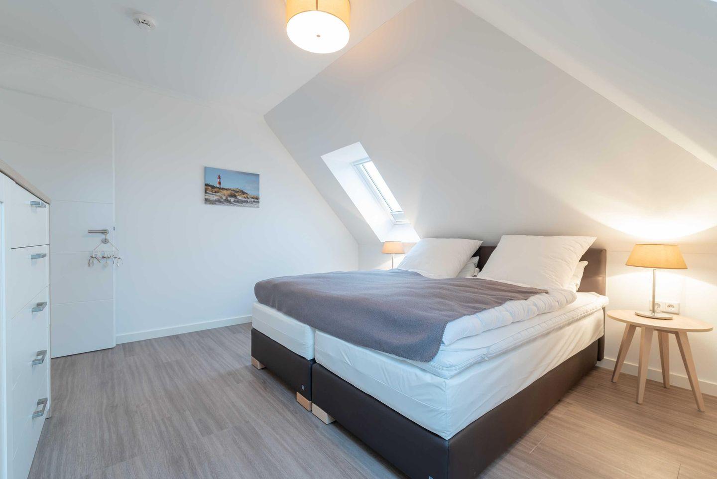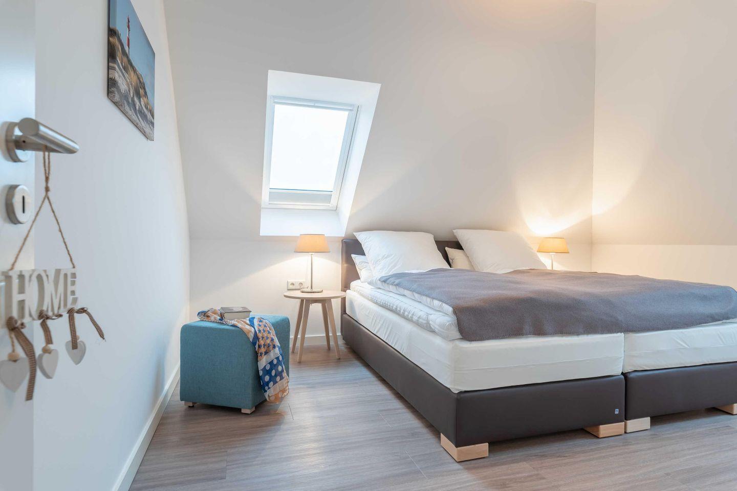 Die beiden Schlafzimmer sind jeweils mit hochwertigen Boxspringbetten als