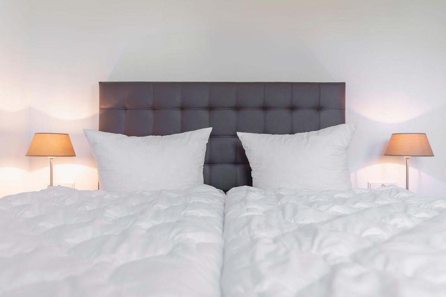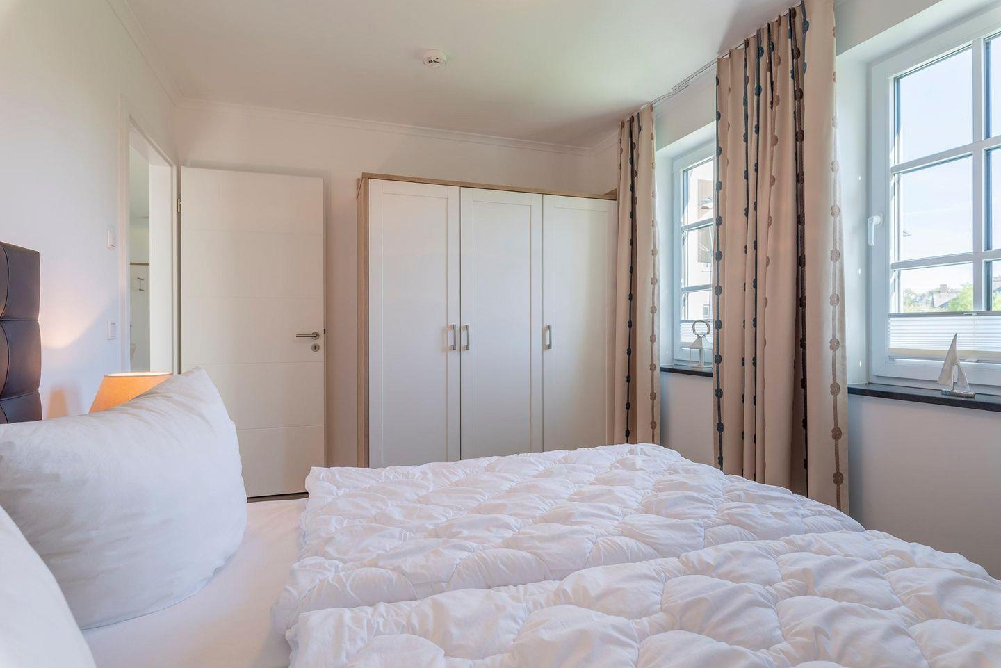 Die zwei Schlafzimmer sind mit bequemen Boxspringbetten und ausreichend Stauraum