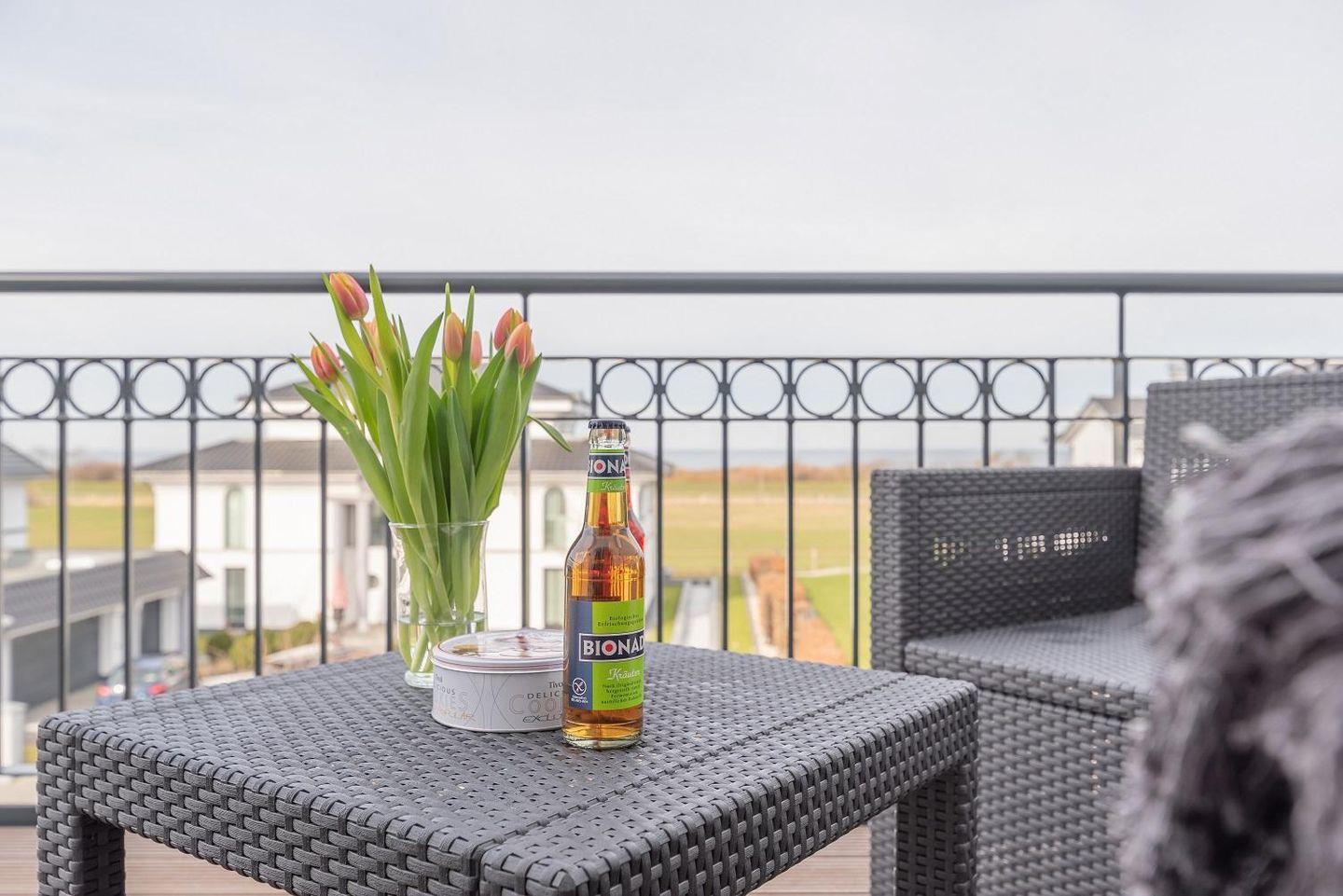 Die Ferienwohnung verfügt über einen großen Balkon mit direktem Ostseeblick.
