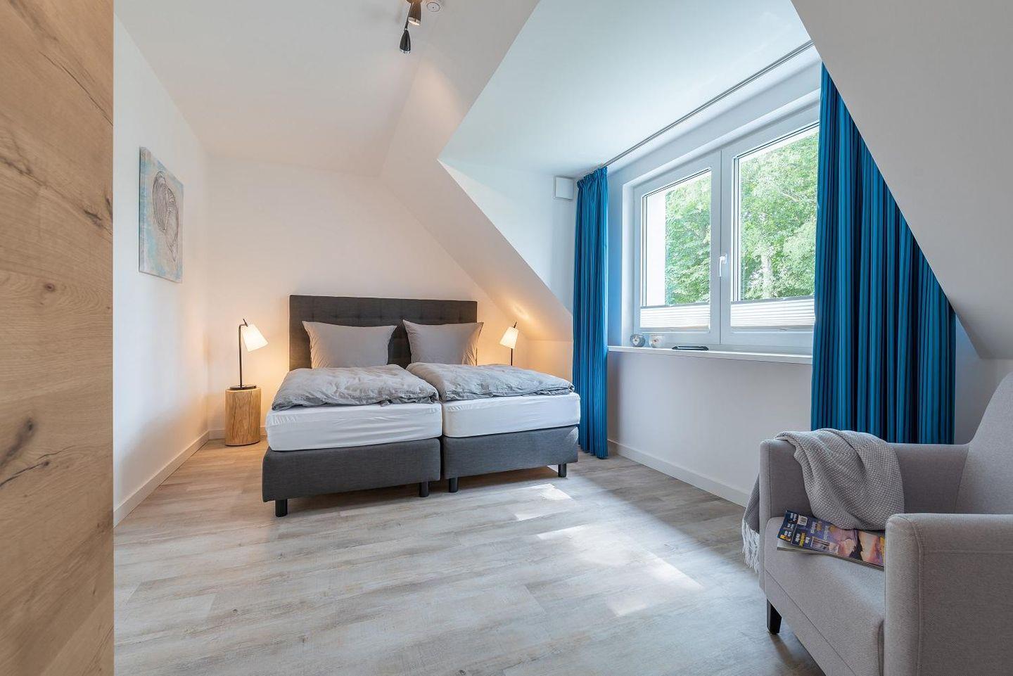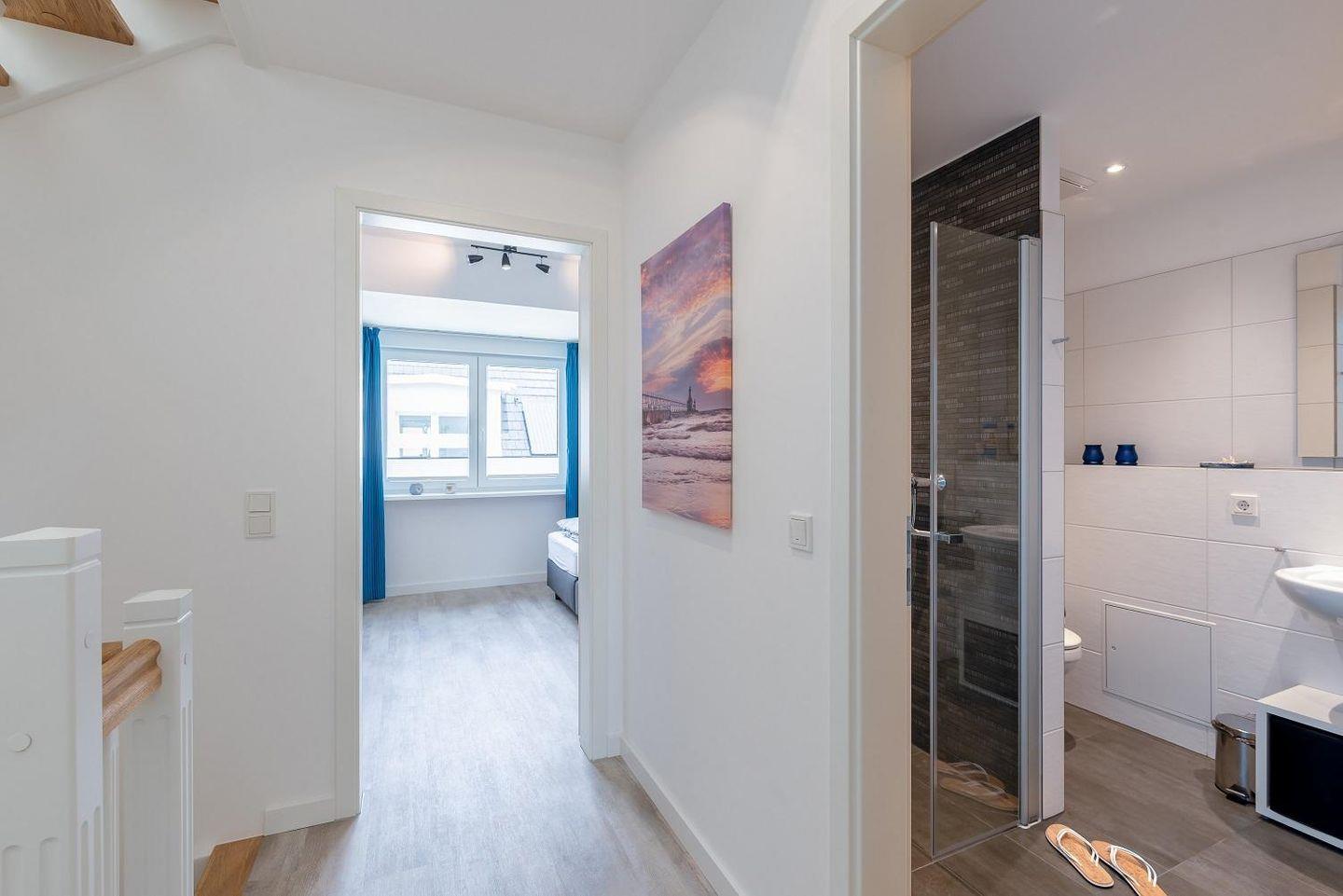 Die Ferienwohnung ist besonders familienfreundlich eingerichtet und ist eine Nichtraucher-Unterkunft. Im Erdgeschoss erwartet Sie ein großer und lichtdurchfluteter Wohn- und Essbereich mit offener Küche. Das Bad besticht mit ebenerdiger Dusche, Föhn und Handtuchtrockner. Zudem können Sie Ihr Reisegepäck in einem separaten Abstellraum verstauen.