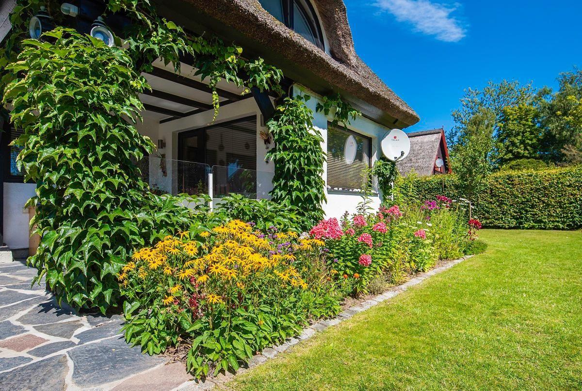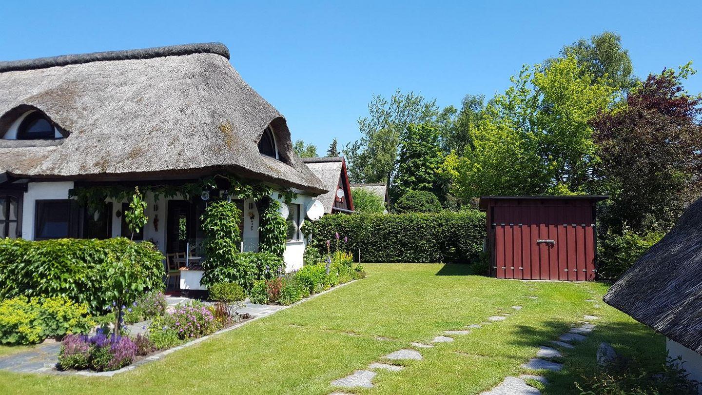Unser weinberanktes Feriendomizil befindet sich in dritter Generation in Familienbesitz und liegt inmitten der historischen Ferienhaussiedlung des Fischerdorfes Börgerende an einem kleinen kaum befahrenen Weg. Das idyllische Grundstück mit prachtvollen Blühpflanzen, umgeben von üppigem Baumbestand und alten Buchenhecken, ist vom öffentlichen Raum gänzlich abgeschottet. Auf 400 qm bietet es neben einer großzügigen Rasenfläche genügend Raum für Rückzug. Die Grundsanierung des Hauses im Jahr 2019 macht es möglich, dass wir unser Kleinod nun an Gäste vermieten können.