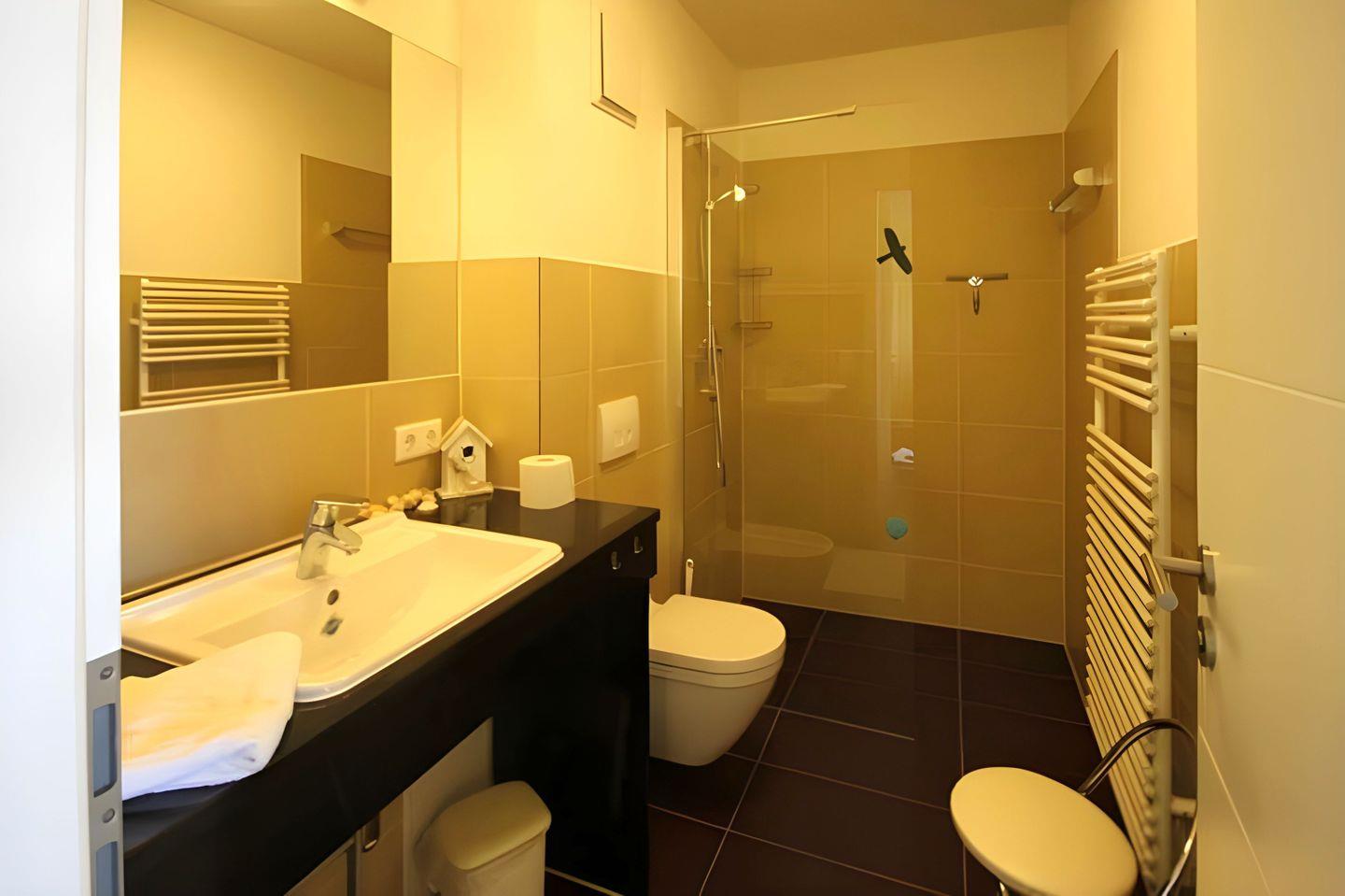 Zu Ihrer Ferienwohnung gehört ein kostenfreier TIEFGARAGENSTELLPLATZ. Bitte beachten Sie die DURCHFAHRTSHÖHE von max. 1,90 m! Der im Gebäude installierte Aufzug erleichtert den Transport der mitgebrachten Koffer. Im Eingangsbereich der Villabefindet sich ein ABSCHLIESSBARER FAHRRADRAUM sowie der angrenzende Waschraum. Eine Waschmaschine und ein Trockner stehen zu Ihrer Verfügung (gegen Gebühr/ Münzautomat). Das kostenfreie WLAN in der Unterkunft ist ausschließlich für die Verwendung von Social Media und den Austausch von Bildern mit Familie und Freunden gedacht. Die Nutzung zum Streamen von Filmen ist nicht vorgesehen. Eine Fußbodenheizung sorgt auch an kalten Tagen für angenehme Wärme in allen Räumen.