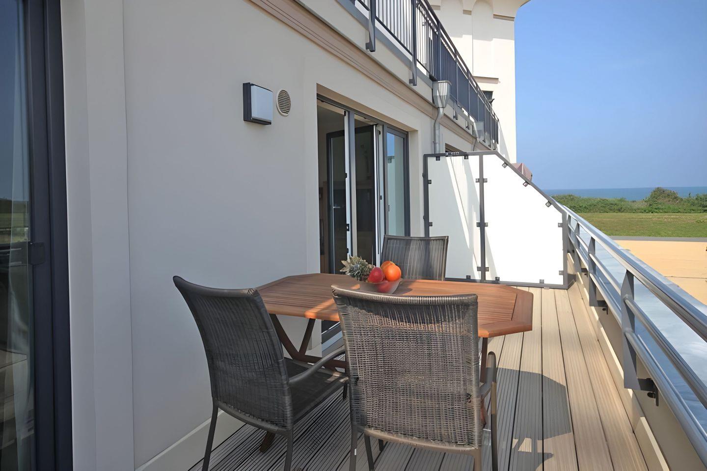 STRANDNAHE 2-RAUMWOHNUNG FÜR MAX. 3 ERWACHSENE UND 1 KLEINKIND MIT BALKON UND SEITLICHEM MEERBLICK IM 1. OG.
