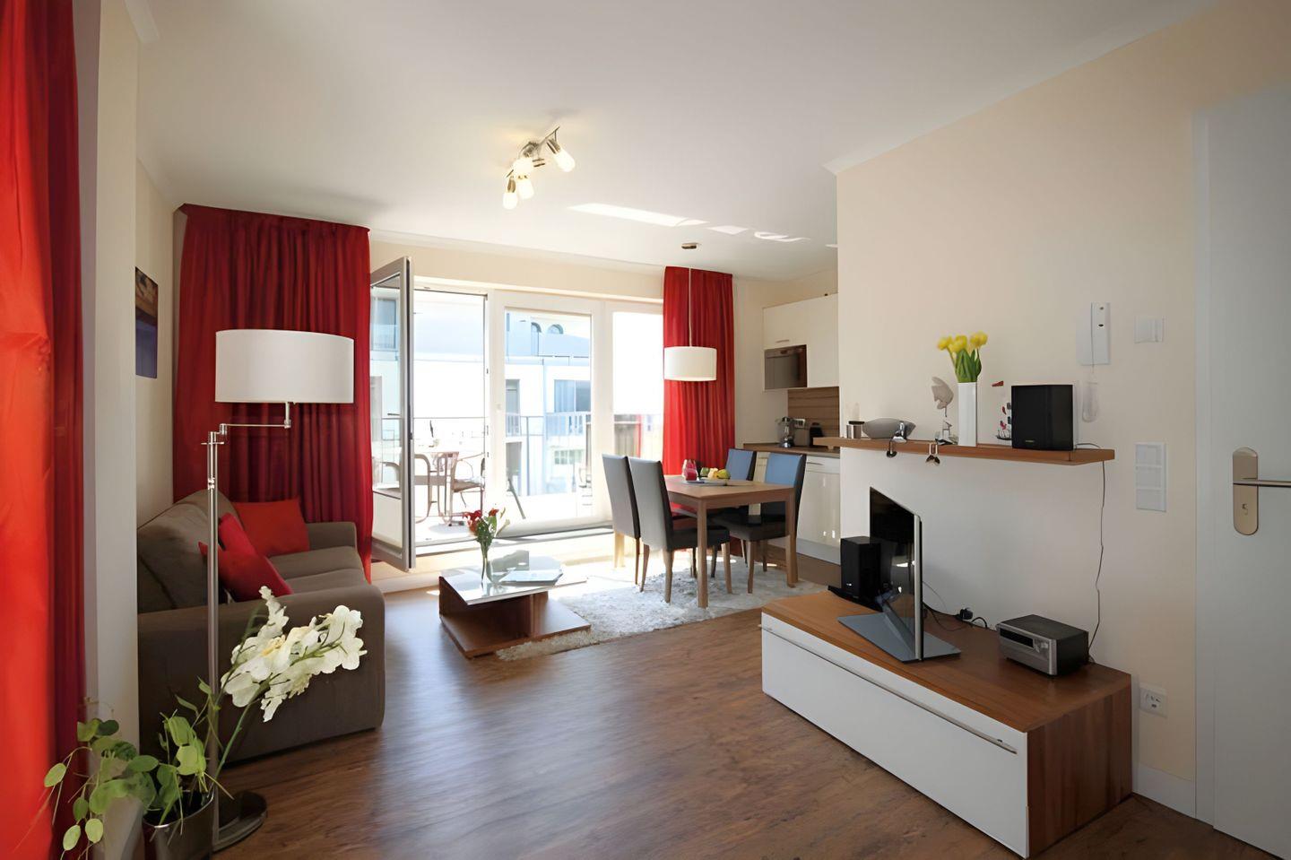 Die Villa Bernstein WE 18 bietet Ihnen auf ca. 45 m² einen komfortablen Aufenthalt im 2. Stock, nur 100 Meter vom Strand entfernt. Die modern ausgestattete Unterkunft verfügt über ein Schlafzimmer, einen Balkon mit eingeschränktem Meerblick, eine offene Küche, Kabel-TV, kostenfreien Privatparkplatz sowie gemeinschaftliche Waschmaschine und Trockner.