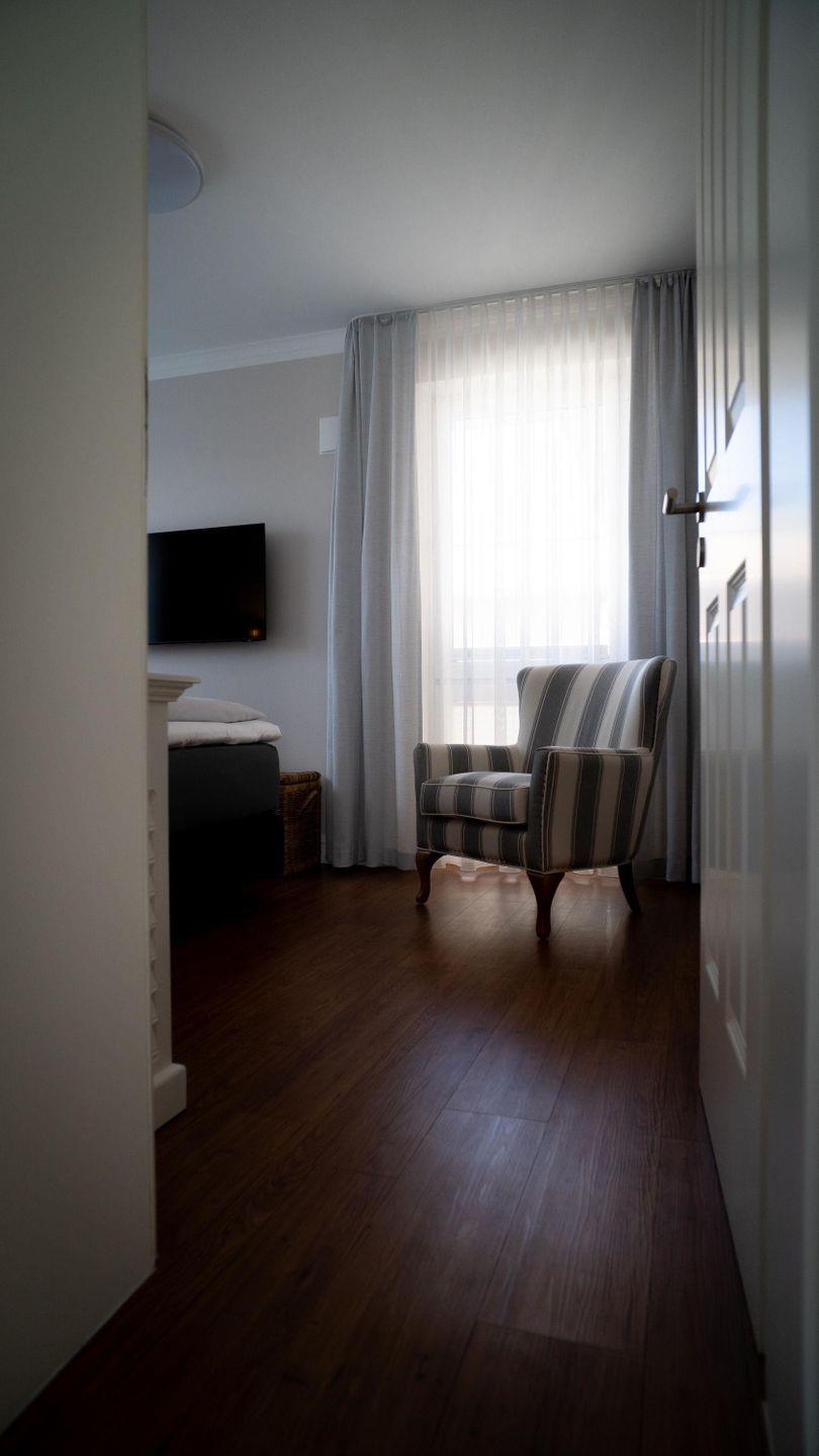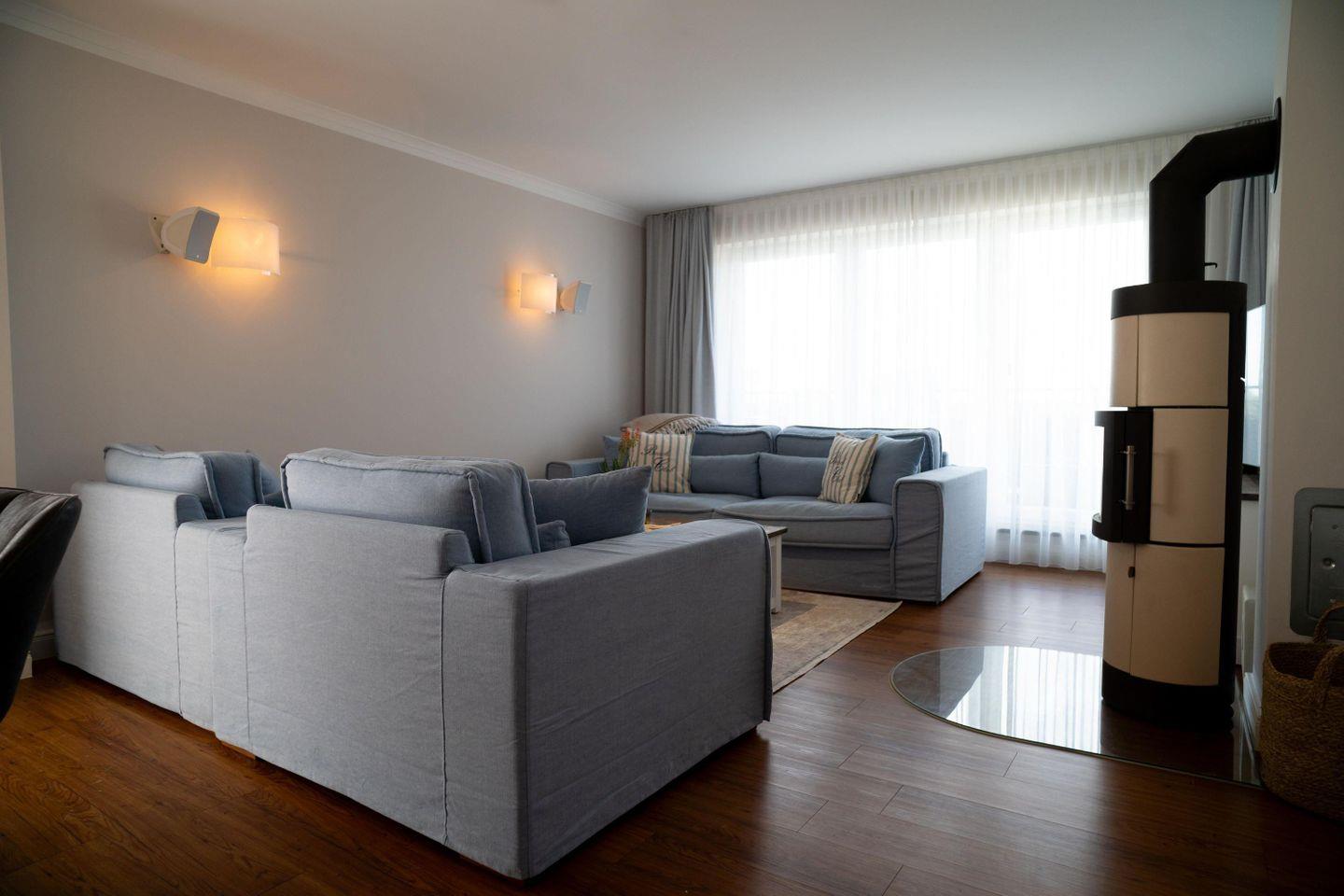 Das Penthouse in der Villa Bernstein in Börgerende bietet auf ca. 117 m² modernen Wohnkomfort für bis zu vier Personen. Ihnen stehen zwei Schlafzimmer, ein großzügiger Wohnbereich mit offen gestalteter Küche, ein Balkon mit eingeschränktem Meerblick sowie ein Kamin zur Verfügung. Zur Ausstattung gehören WLAN, Kabel-TV, ein kostenloser Privatparkplatz und ein eigener Strandkorb.
