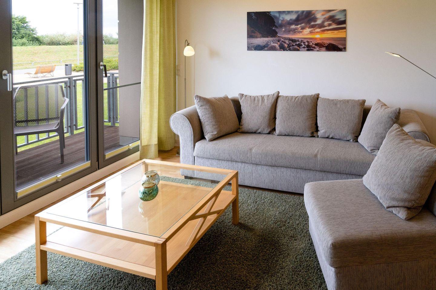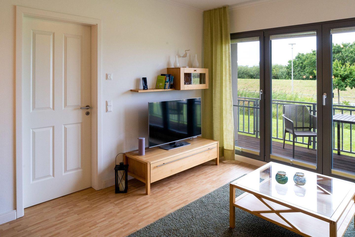 STRANDNAHE HELLE 2-RAUMWOHNUNG FÜR MAX. 2 ERWACHSENE UND 1 KIND, MIT BALKON, UNVERBAUTEM BLICK ZUM DEICH (OSTSEESEITE) IM EG (HOCHPARTERRE).
