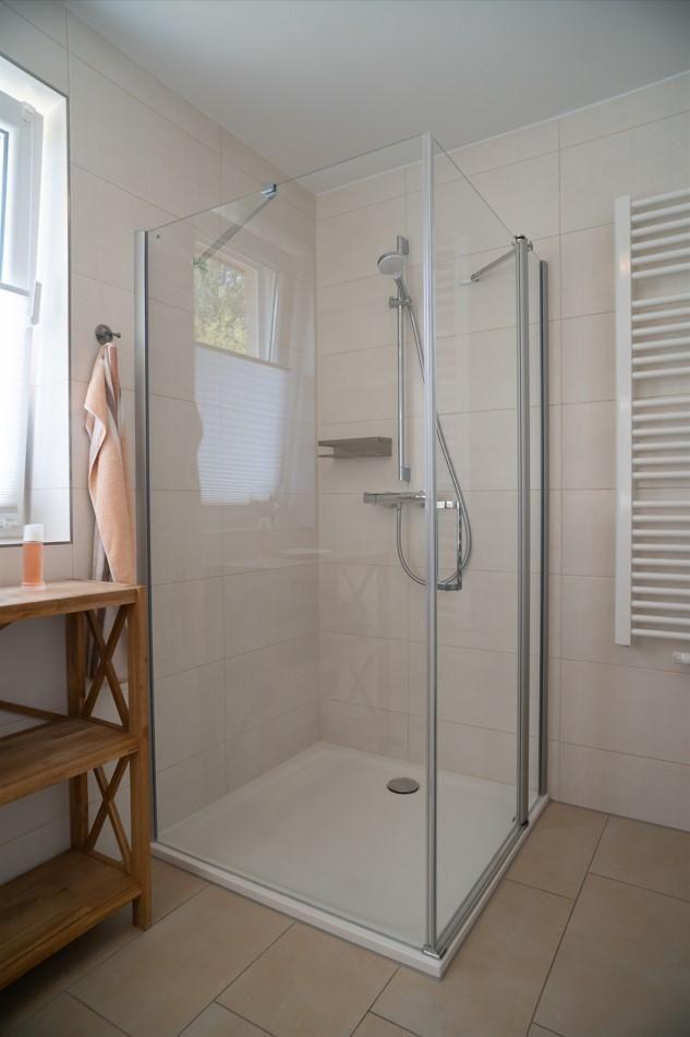 Tageslichtbad mit Waschmaschine und Regendusche rundet das Gesamtbild ab.