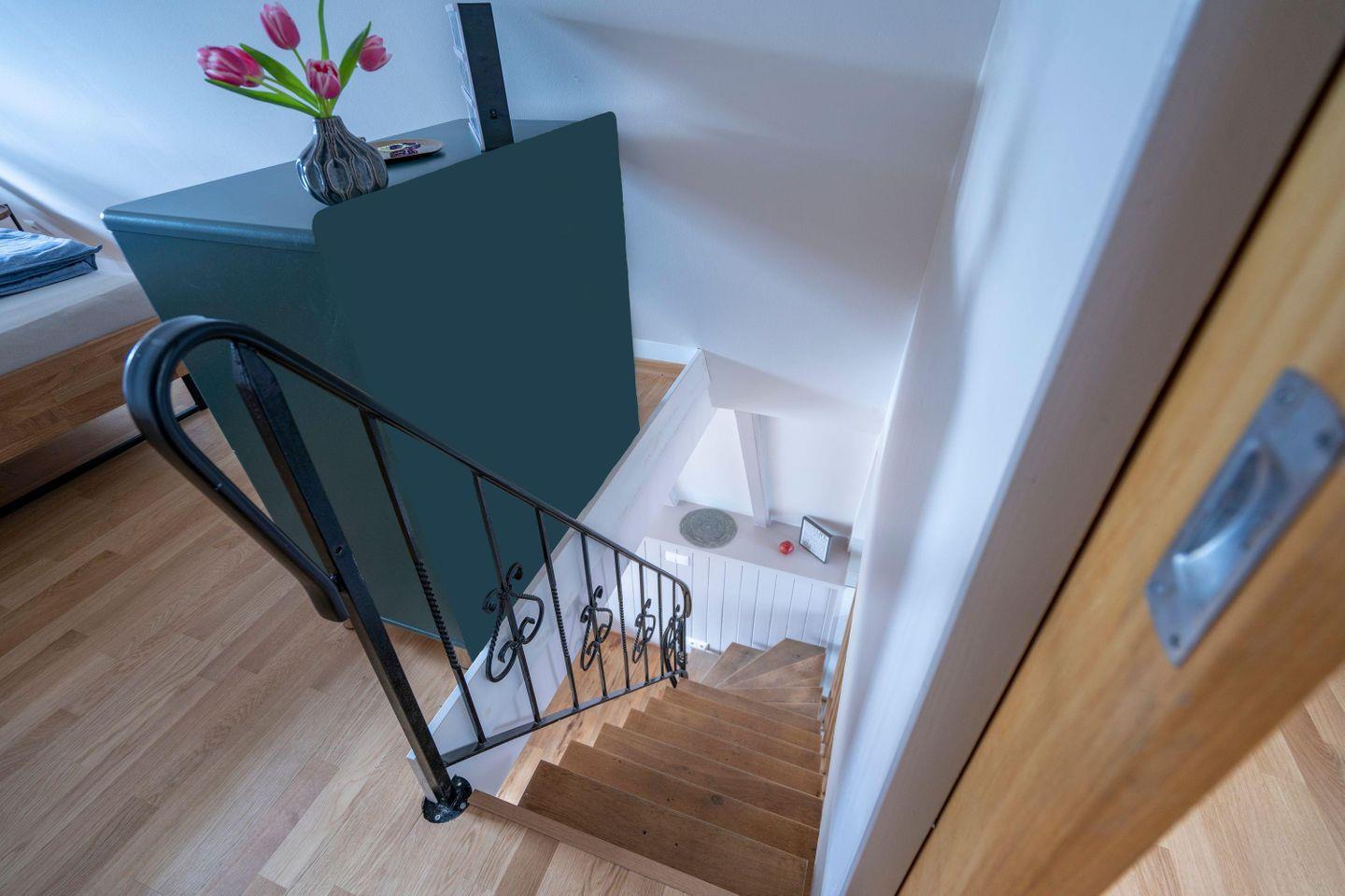 Unsere schmale und steile Treppe ins Obergeschoss ist im Originalzustand
