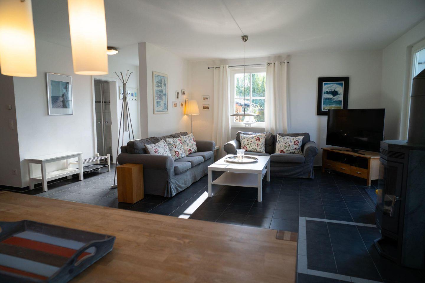 befindet sich der modern und stilvoll eingerichtete Wohnbereich. Die bequeme