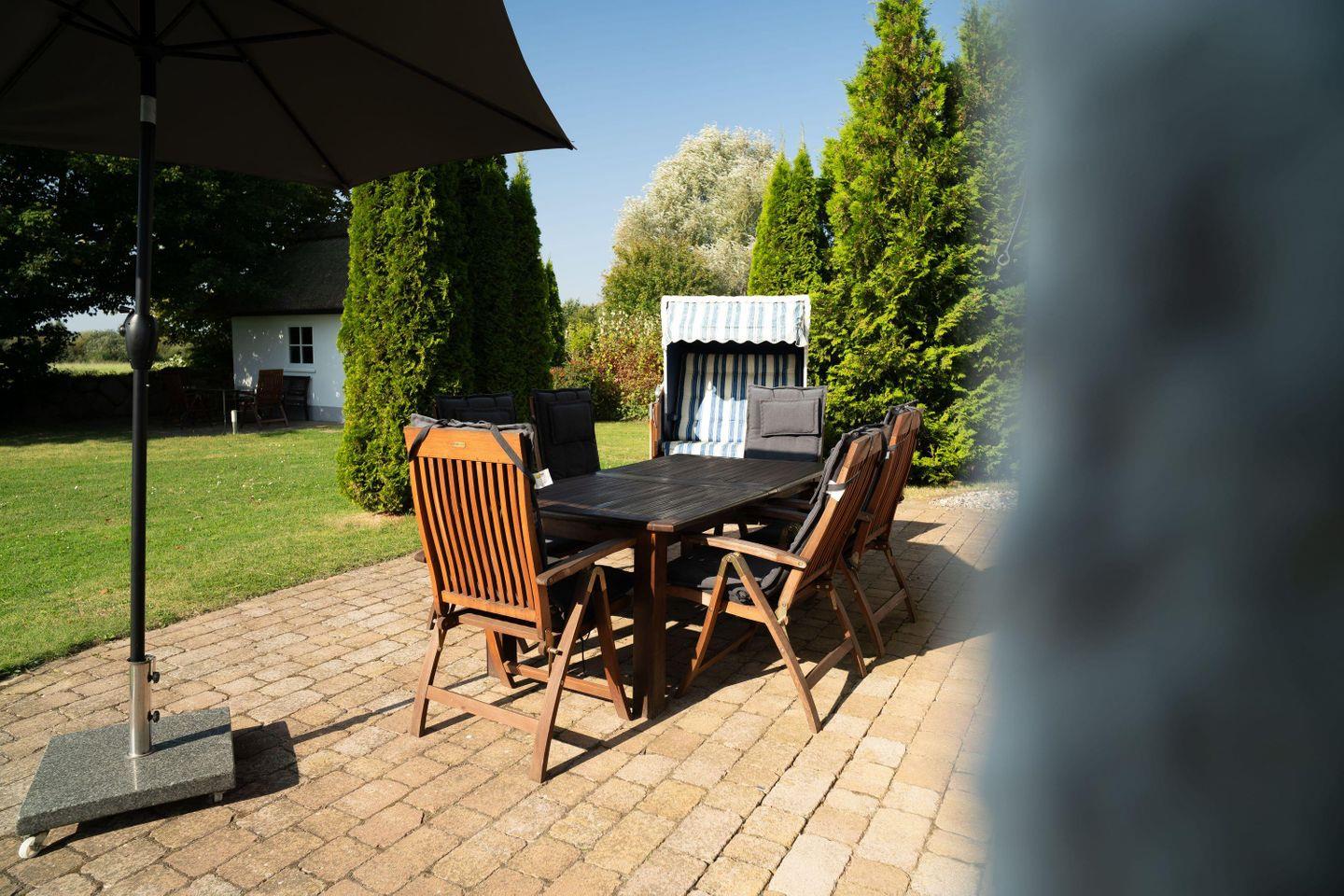 Über einen Ausgang im Wohnzimmer gelangen Sie zum Außenbereich des Hauses. Der