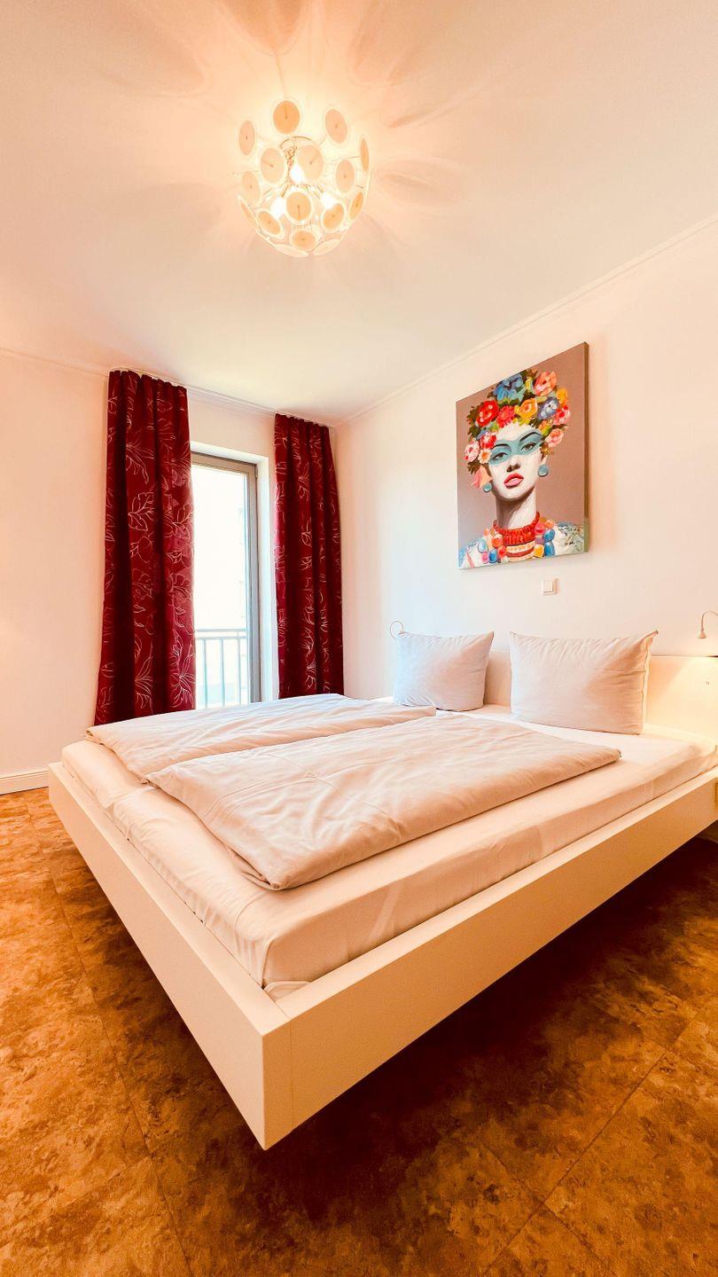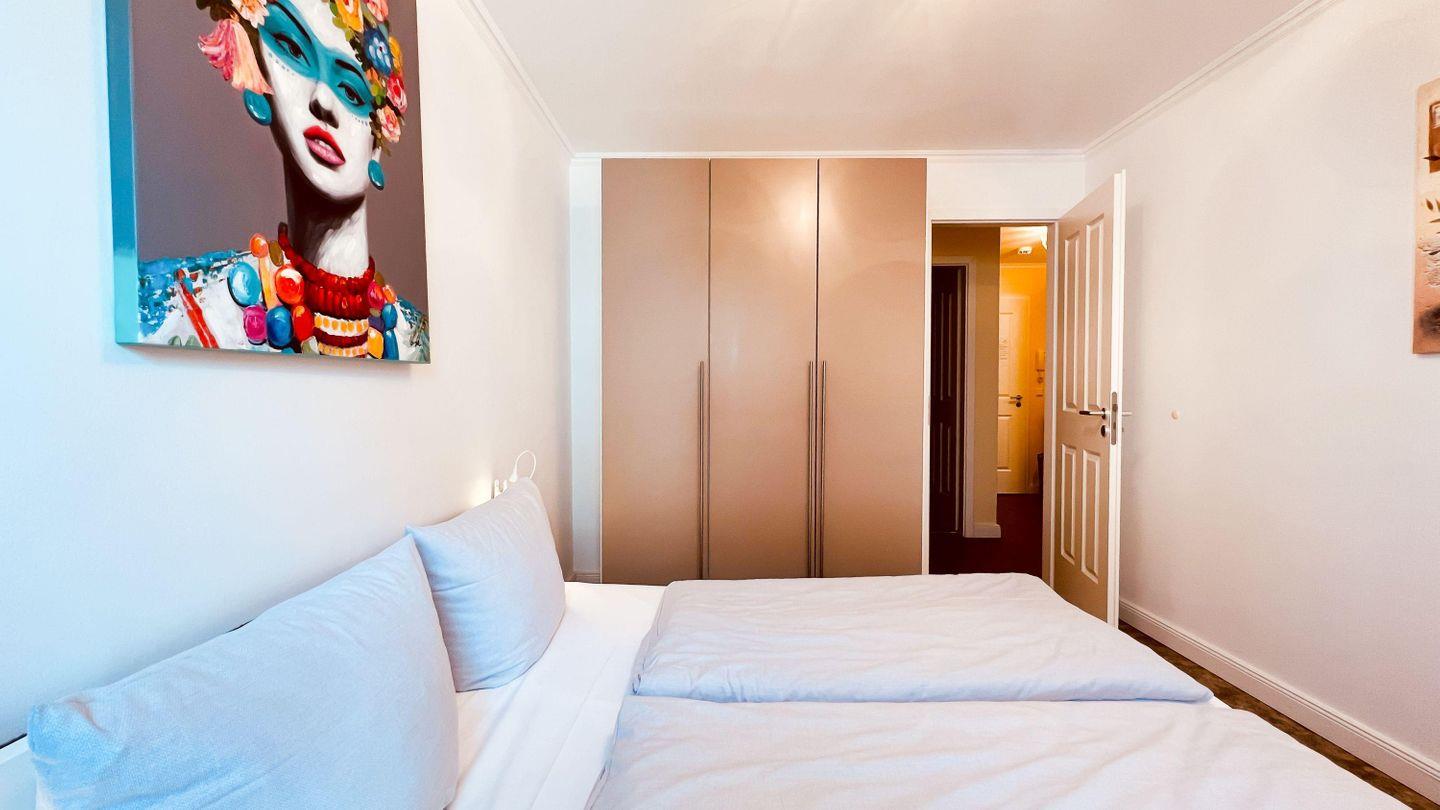 Mit einem großen Doppelbett (getrennte Matratzen) und einem hohen Kleiderschrank empfängt Sie einer der SCHLAFRÄUME. Das zweite Schlafzimmer ist mit zwei Einzelbetten (als Doppelbett hergerichtet/ getrennte Matratzen) und ebenfalls einem hohen Kleiderschrank eingerichtet. Das BADEZIMMER besticht mit einer ebenerdigen Dusche. Angrenzend befindet sich noch ein separates GÄSTE-WC. Auf den charmanten ECKBALKON (Süd-West-Ausrichtung) gelangen Sie durch den Wohnbereich. Von hier aus können Sie einen Blick auf die blaue Ostsee werfen. In allen Räumen sorgt eine Fußbodenheizung für gemütliche Wärme. In der Wohnung finden Sie noch eine zusätzliche Abstellgelegenheit für reichlich Stauraum.