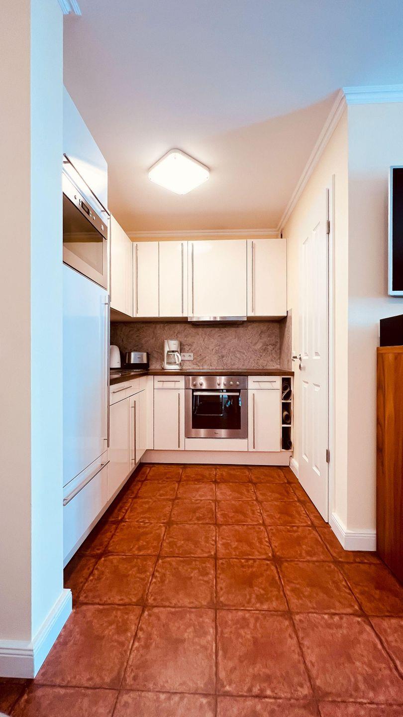 Der kombinierte WOHN-/ ESSBEREICH besticht mit einer gemütlichen Leder-Schlafcouch und einem stimmungsvollen Gas- Kamin. Ein großzügiger Esstisch mit Stühlen lädt zu gemeinsamen Mahlzeiten und Spieleabenden ein. Für die mediale Unterhaltung stehen ein TV- Gerät und ein Radio für Sie bereit. In der offenen EINBAUKÜCHE haben Sie alles, was zum Zubereiten von vollwertigen Mahlzeiten notwendig ist. Einen Geschirrspüler, Kühlschrank, inklusive Gefrierfach, Kaffeemaschine, Wasserkocher, Toaster, Mikrowelle und diverse Kochgeräte.