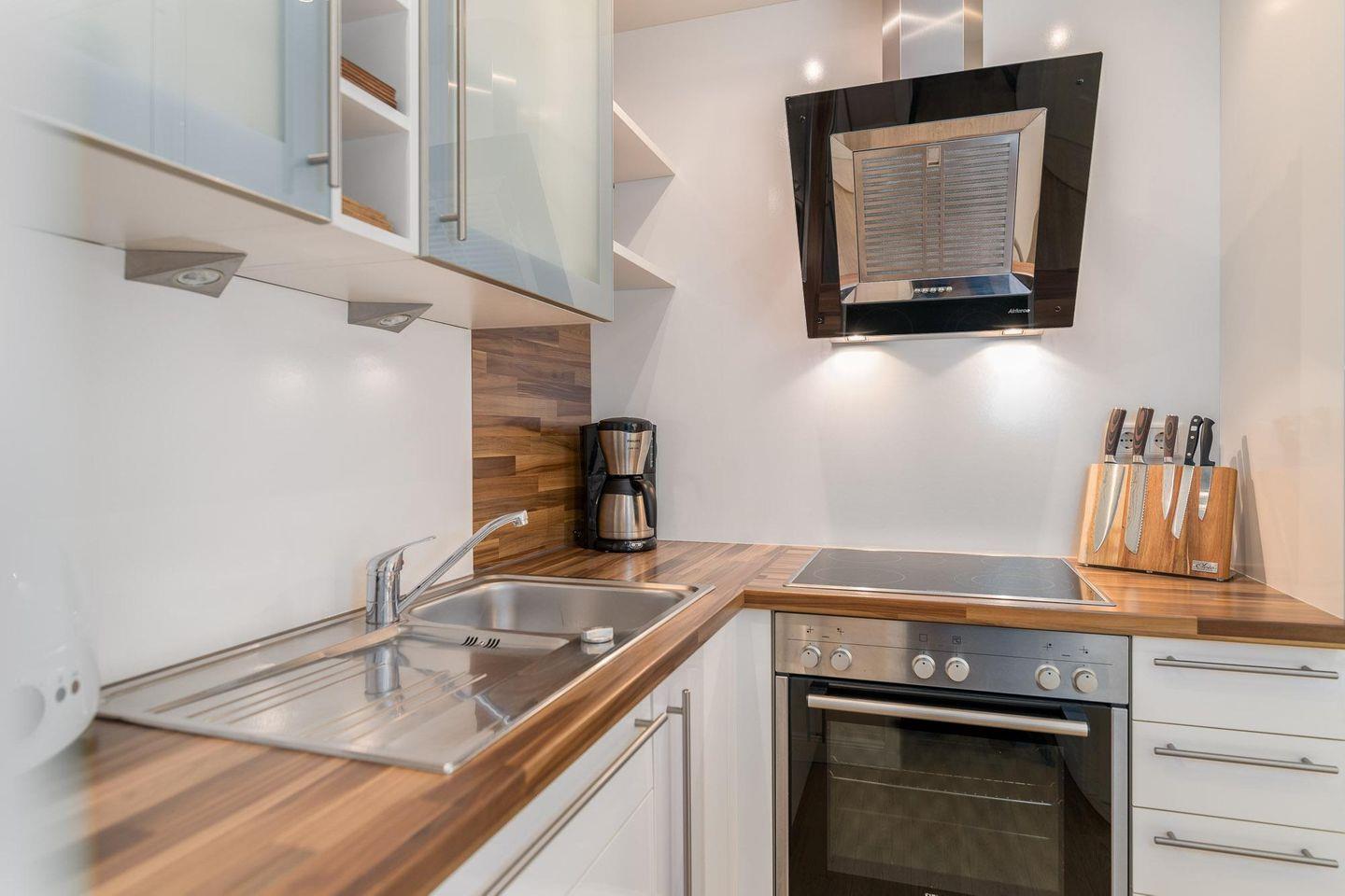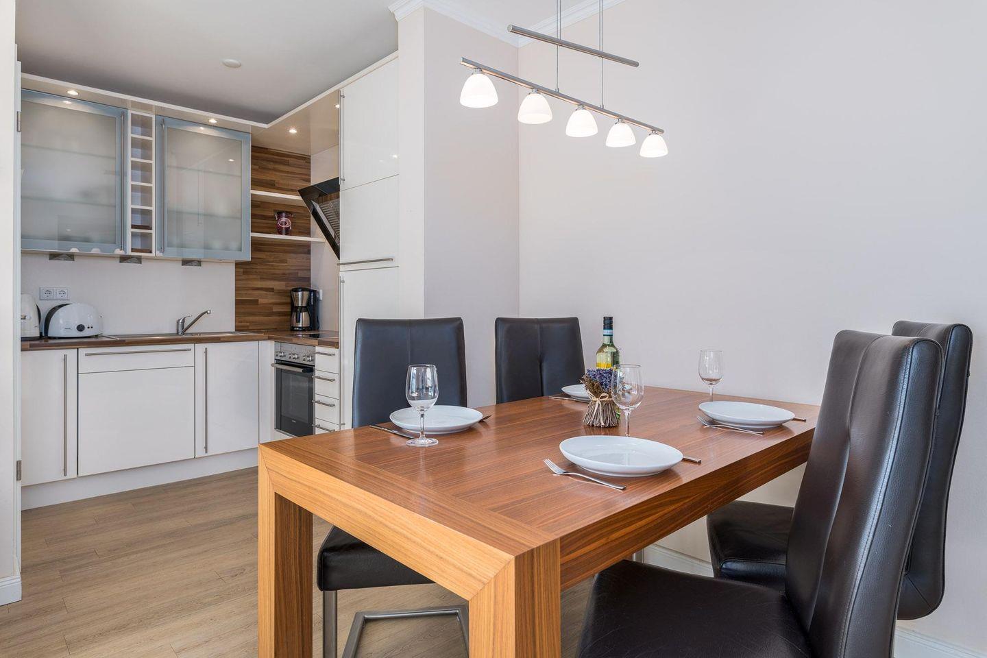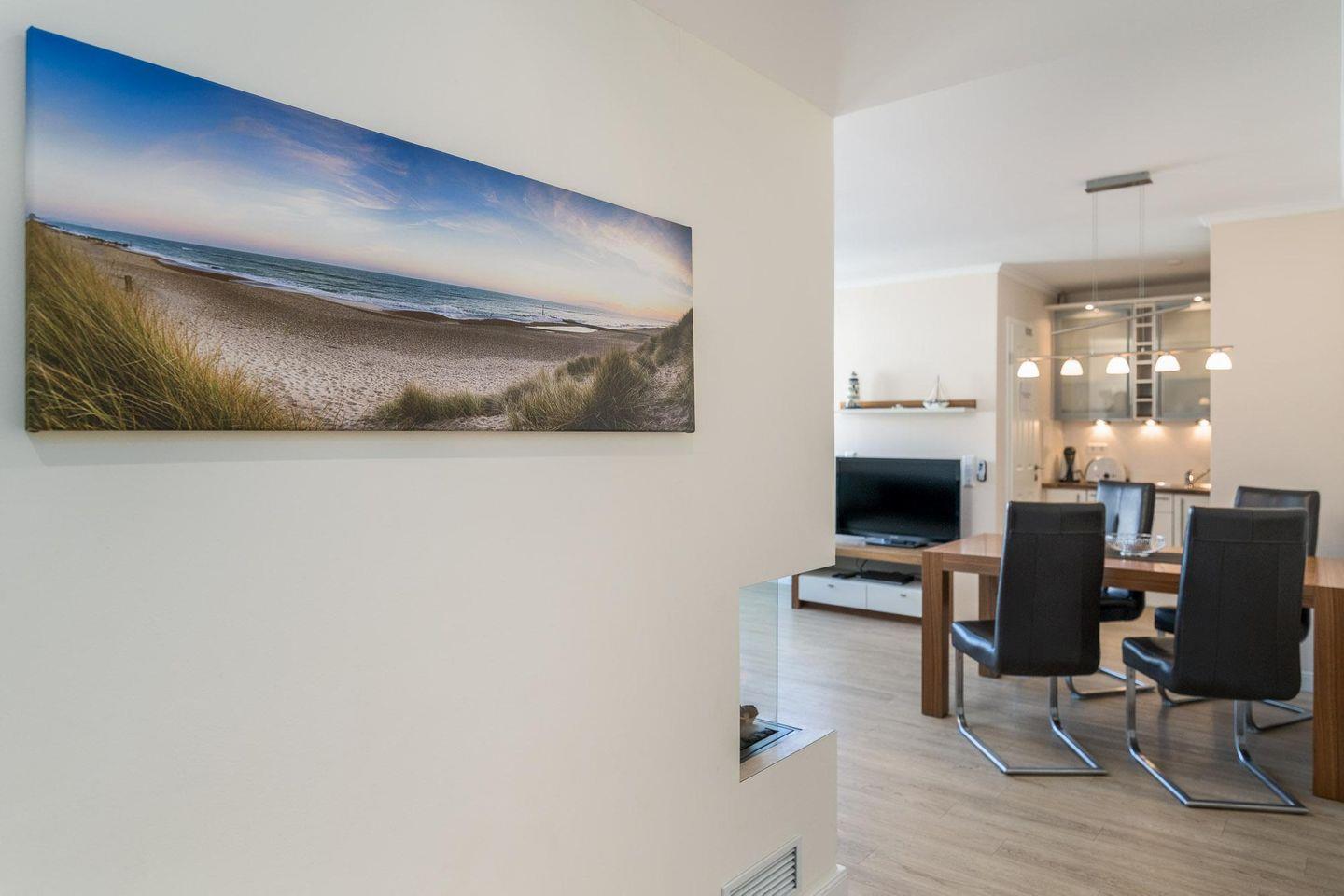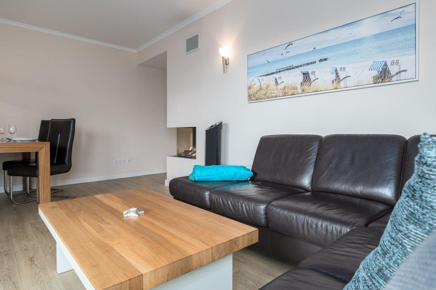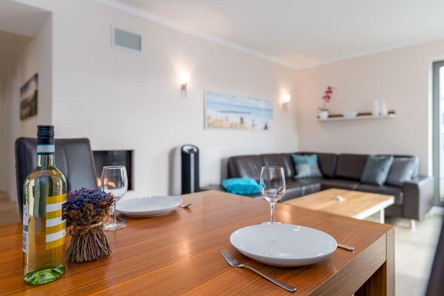 Die 2011 erbaute Unterkunft liegt nur 50 m vom Ostseestrand entfernt. Der helle, lichtdurchflutete WOHNRAUM empfängt Sie mit stilvollem GAS-KAMIN, TV- Gerät, DVD-Spieler und gemütlicher Leder-Sitzecke. Im dortigen Essbereich, der mit einem Massivholz-Esstisch und bequemen Stühlen eingerichtet wurde, können gesellige Mahlzeiten und auch Spieleabende der ganzen Familie stattfinden. Die OFFENE EINBAUKÜCHE ist ausgestattet mit Siemens-Einbaugeräten (Geschirrspüler, Mikrowelle, Cerankochfeld, Backofen), Dunstabzugshaube, Kühlschrank mit Gefrierfach, Kaffeemaschine, Wasserkocher und Toaster.