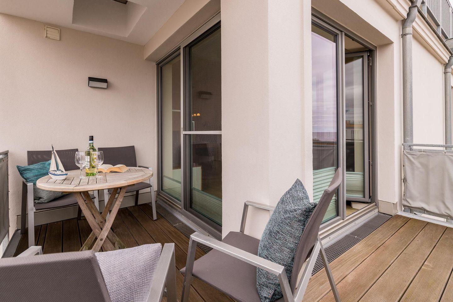 STRANDNAHE, EXKLUSIVE 3-RAUMWOHNUNG FÜR MAX. 3 ERWACHSENE UND 2 KLEINKINDER, 2 SCHLAFZIMMER, GÄSTE-WC UND BALKON MIT MEERBLICK IM 2.OG.