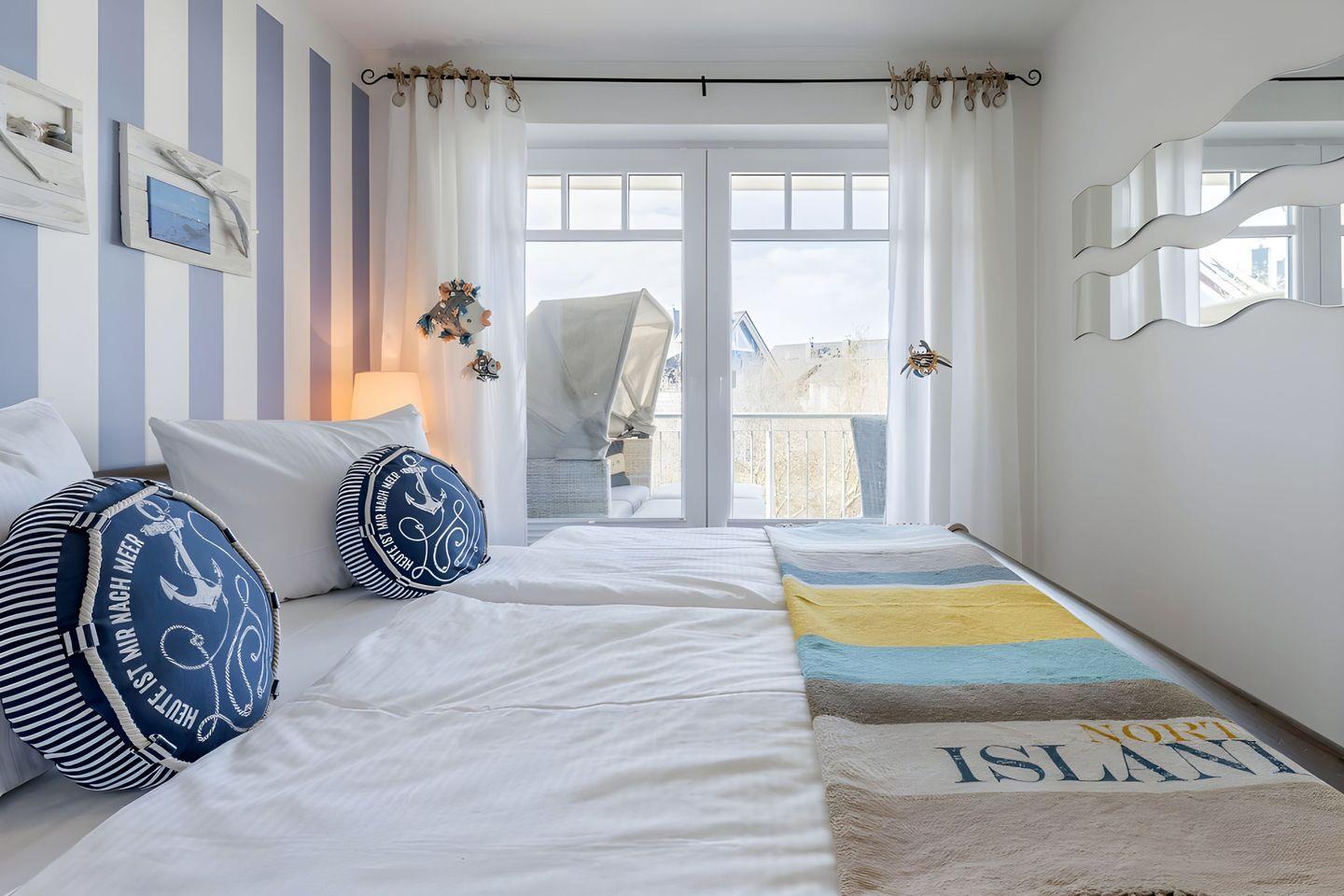 Zugang auf den herrlichen Balkon mit Meerblick. Neben einer Balkonaustattung mit