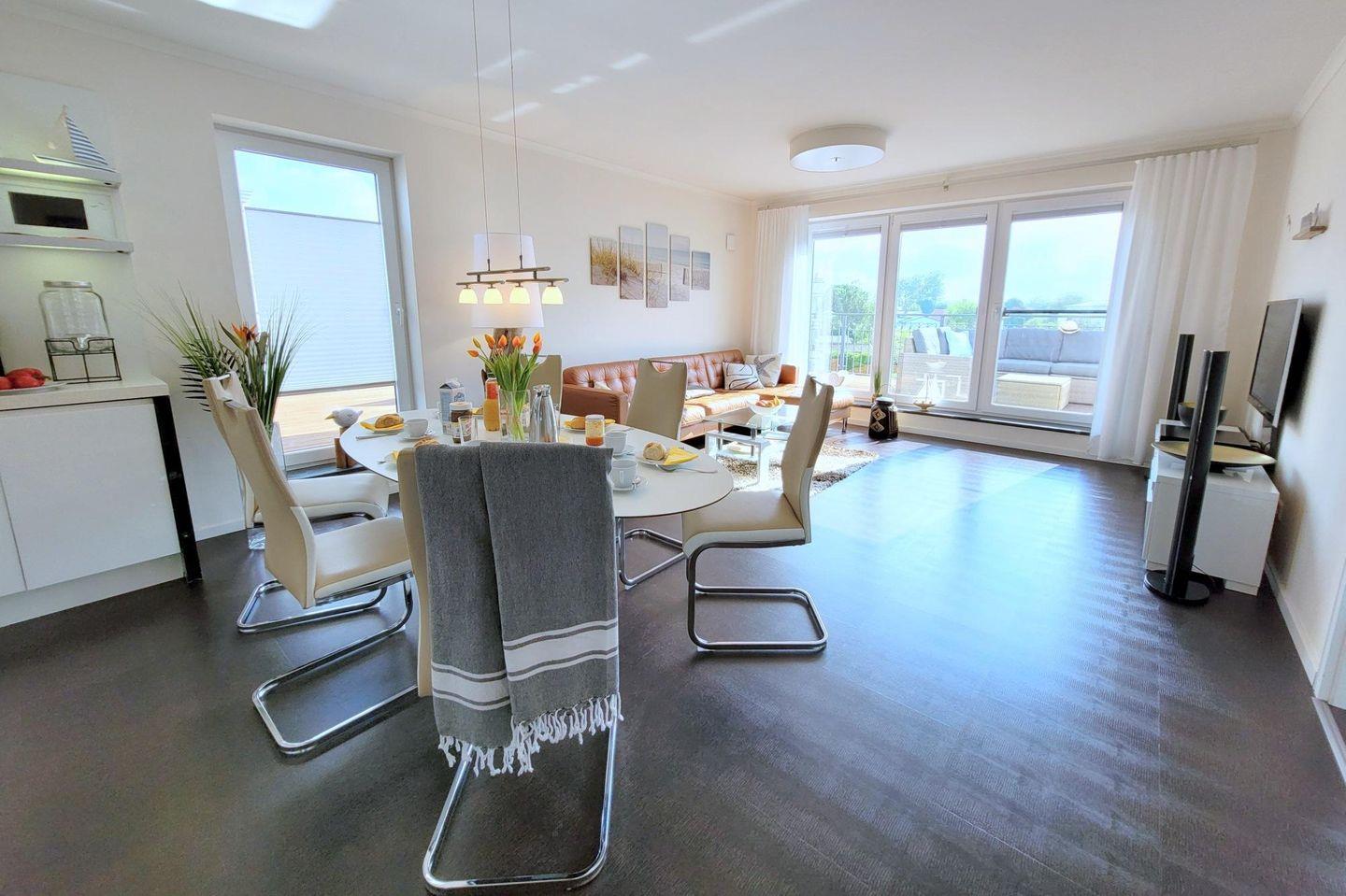 Das Penthouse „meerZEIT“ bietet bis zu vier Personen viel Platz und besticht durch direkten Strandzugang (keine Strasse!), eine XXL Dachterrasse mit Schlafstrandkorb und Meerblick aus der ersten Reihe, moderne Ausstattung inklusive WLAN, Sat-TV, Teufel-Sound, zwei Badezimmer mit bodengleicher Dusche und Badewanne. Ein überbreiter Tiefgaragenparkplatz, Aufzug sowie...