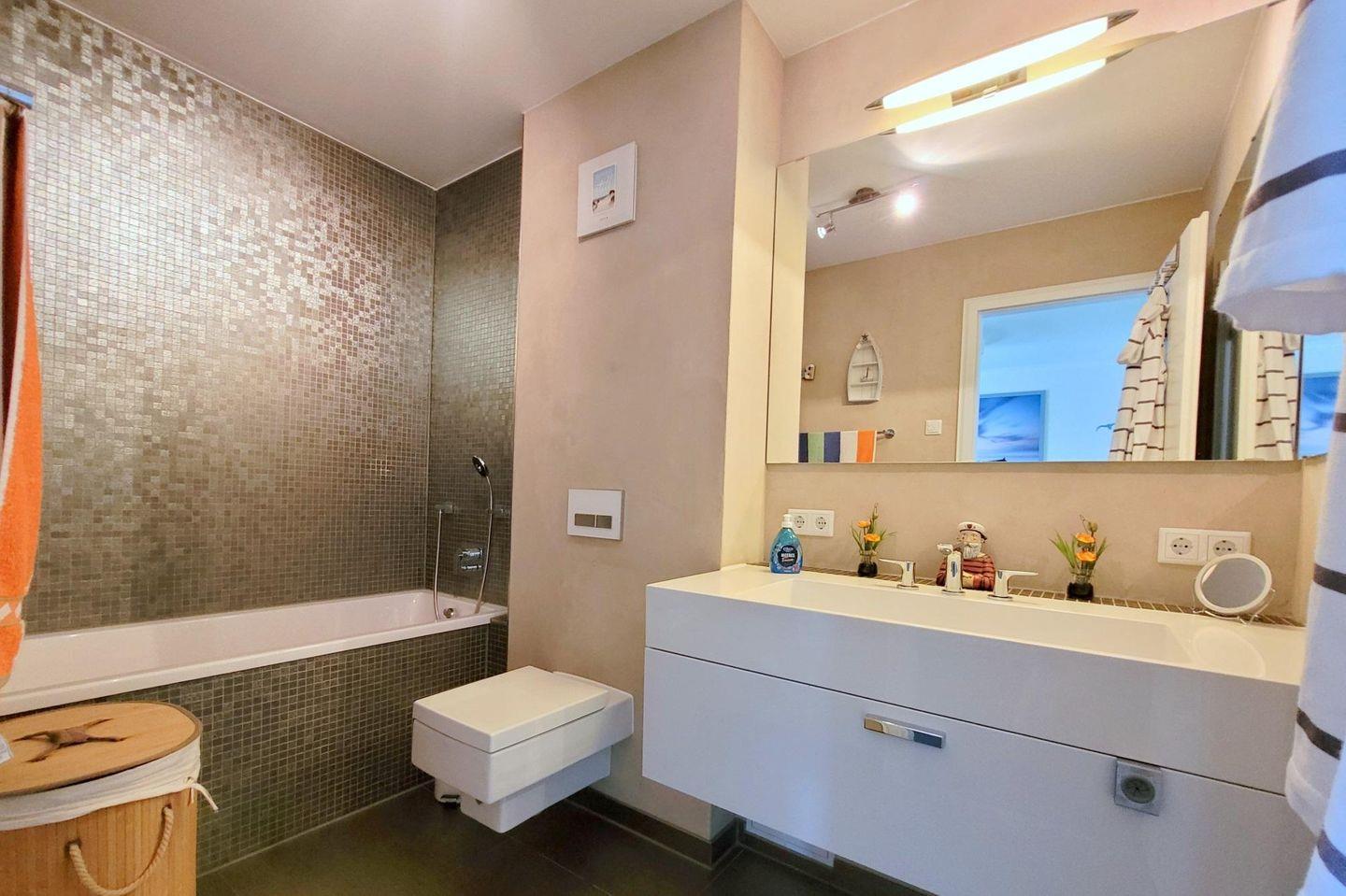 Die Wohnung ist mit raumhohen Fenstern und Blindouts ausgestattet. Die Fußbodenheizung sorgt für wohlige Wärme in allen Räumen. Ein separater Abstellraum bietet Stauraum für Ihre Urlaubskleidung.