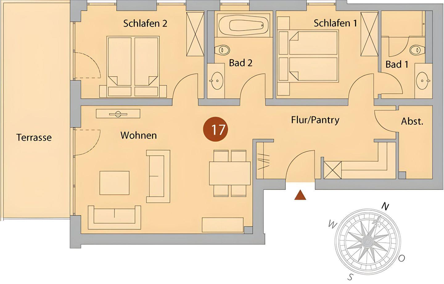 Ein separater ABSTELLRAUM bietet Stauraum für Ihre Urlaubskleidung. In beiden DUSCHBÄDERN finden Sie eine bodengleiche Dusche vor. Über den Wohnbereich und eines der Schlafzimmer haben Sie Zugang zur herrlichen DACHTERRASSE (Balkon). Durch die Süd-Westausrichtung können Sie den seitlichen Blick auf die Ostsee genießen. Der Strand befindet sich nur 50 Meter entfernt. Eine Fußbodenheizung sorgt für wohlige Wärme in allen Räumen.