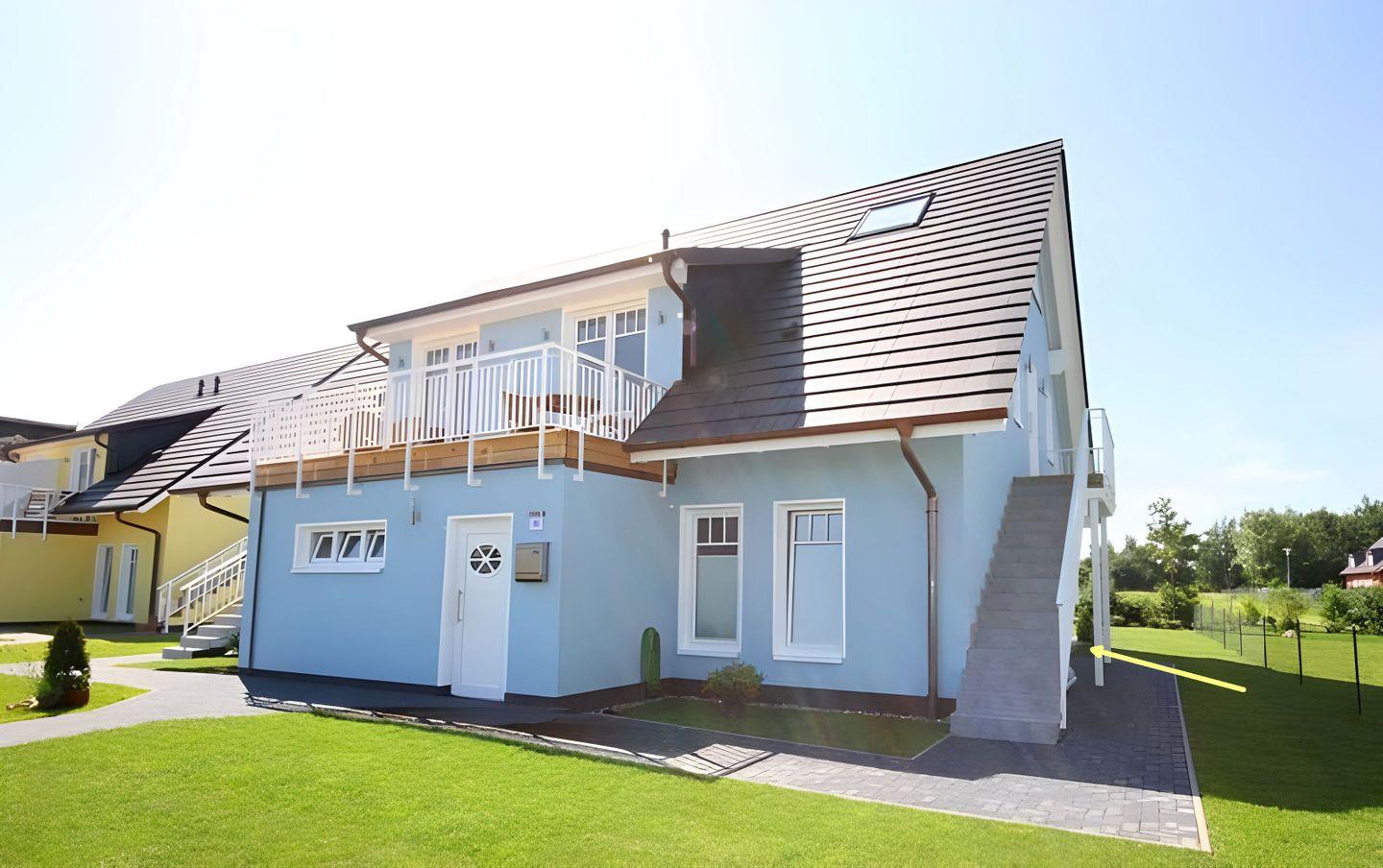Die familienfreundlich ausgestattete Ferienwohnung im Erdgeschoss verfügt über drei Zimmer, eine sonnige Terrasse (Süd-West Ausrichtung) sowie Zugang zum Saunablockhaus im Garten und liegt nur etwa 250 m vom Ostseestrand entfernt.