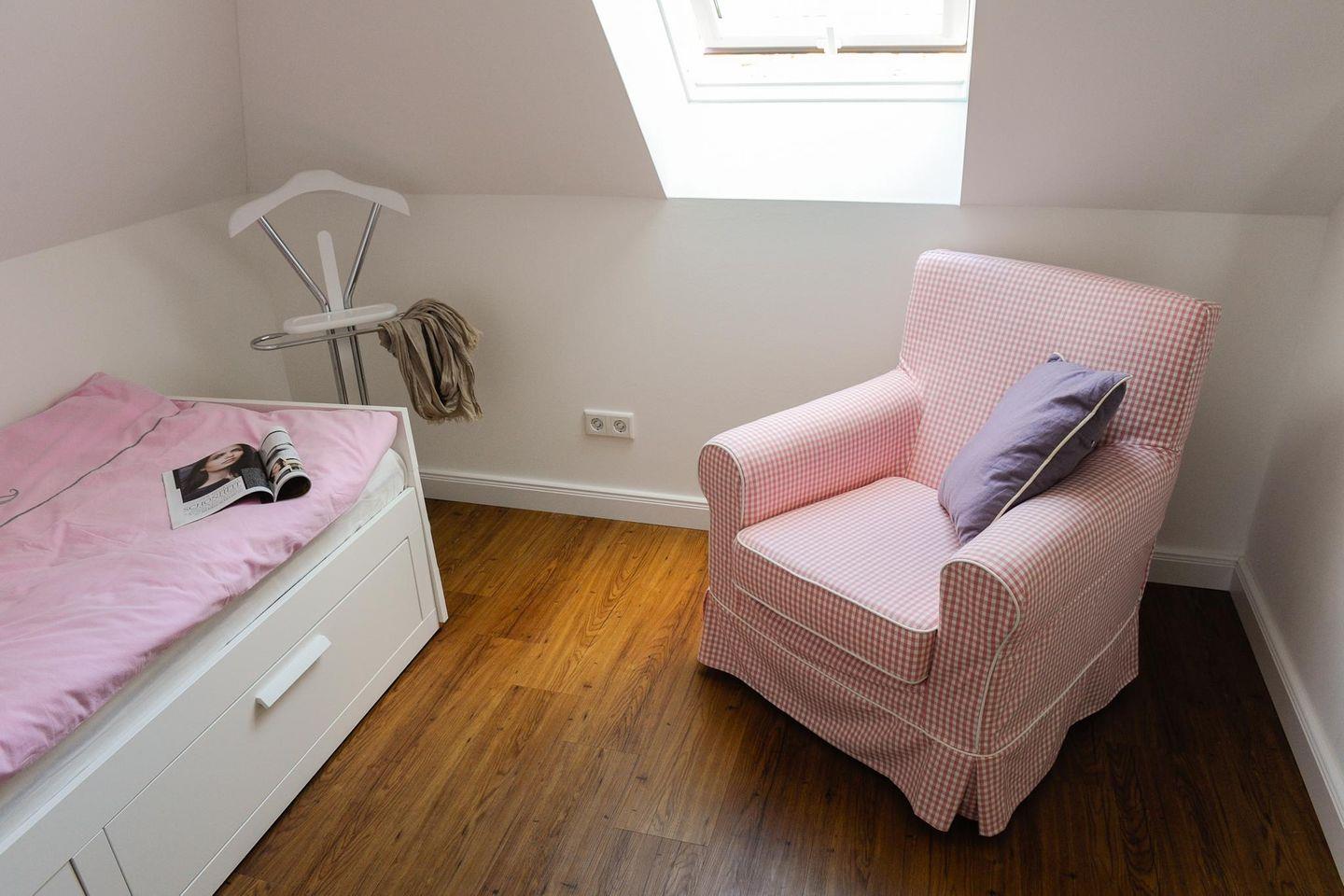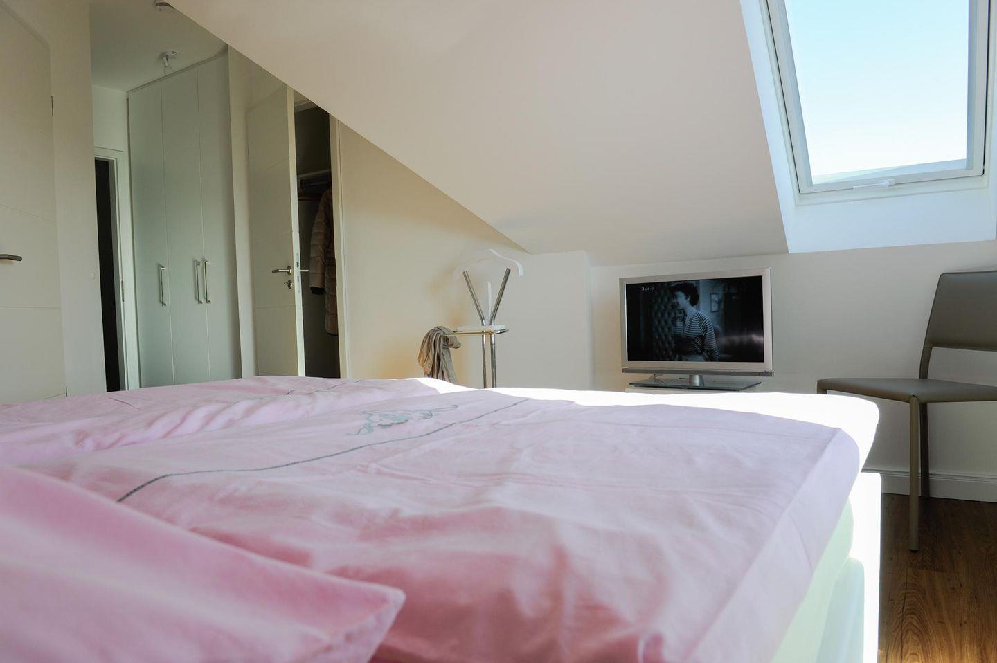 Sonnige, geräumige 3-Zimmerwohnung im Dachgeschoss (2. OG) mit zwei Balkonen und Meerblick (120 m zum Strand) und hochwertiger Unterhaltungselektronik.