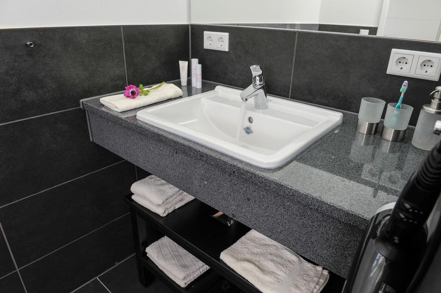 2 Bäder mit bodengleicher Dusche, beheizbarem Handtuchhalter und Föhn, Kinderhocker und Kindereinsatz für WC
