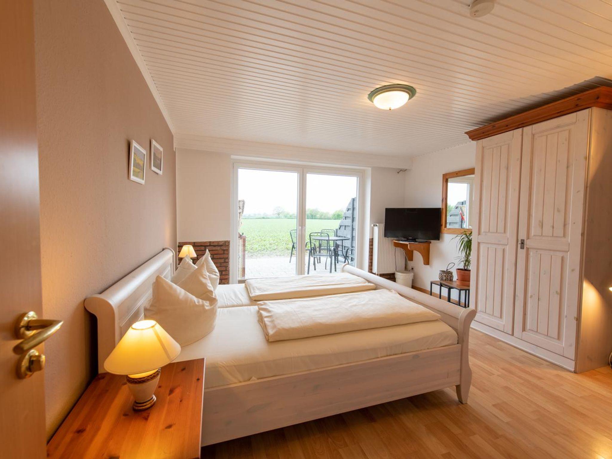 Ebenerdige Doppelzimmer im Nebengebäude mit Dusche und WC, TV