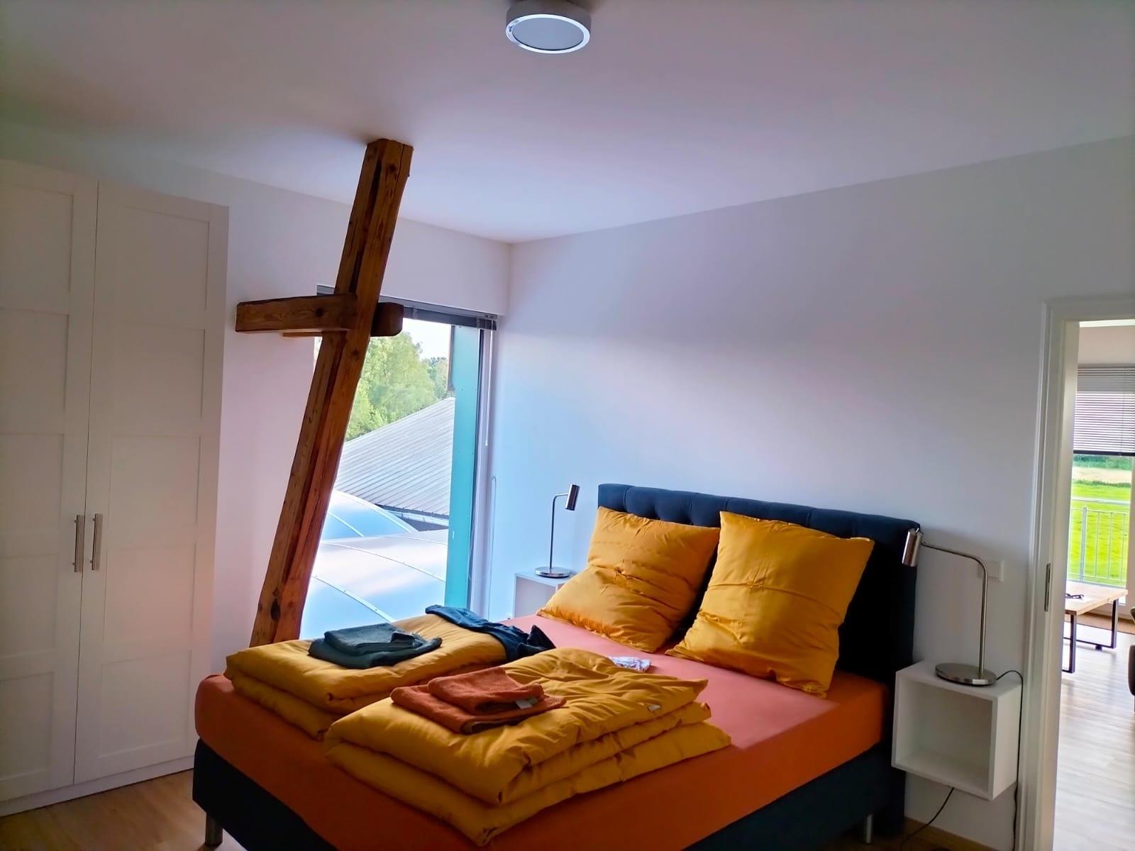 Unsere 95 qm Ferienwohnung wurde im Sommer 2022 fertiggestellt und liegt im Ortskern von Bünsdorf, einem ruhigen, kleinen Ferienort am Wittensee. Sie befindet sich auf einem ehemaligen Bauernhof, im Obergeschoss eines früheren Stallgebäudes und ist über eine großzügige Außentreppe erreichbar. Die moderne, helle Ferienwohnung bietet Platz für