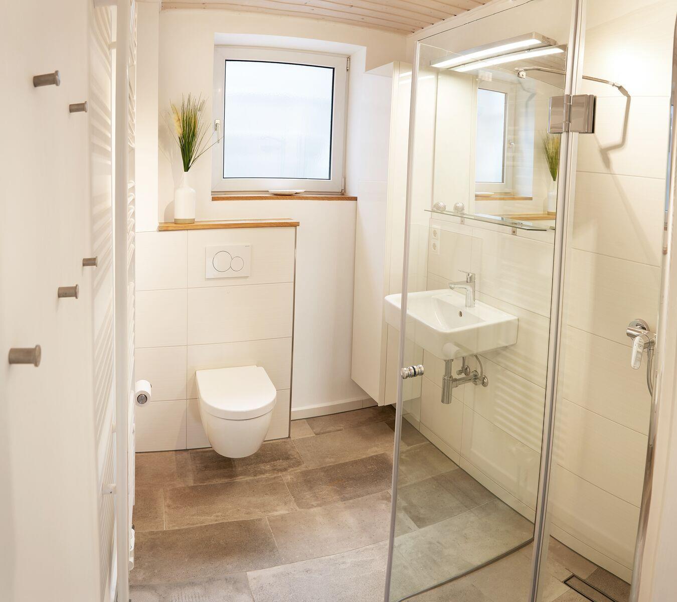 Genug Raum für einen erholsamen Schlaf bieten die drei Schlafzimmer. Ein Doppelbettschlafzimmer, sowie zwei weitere Zimmer, eines mit zwei Einzelbetten und das andere mit einem Etagenbett, alle ausgestattet mit Verdunkelungsplissees und Insektenschutzgitter. Das moderne Duschbad mit Außenfenster rundet den Komfort der Ferienwohnung perfekt ab.