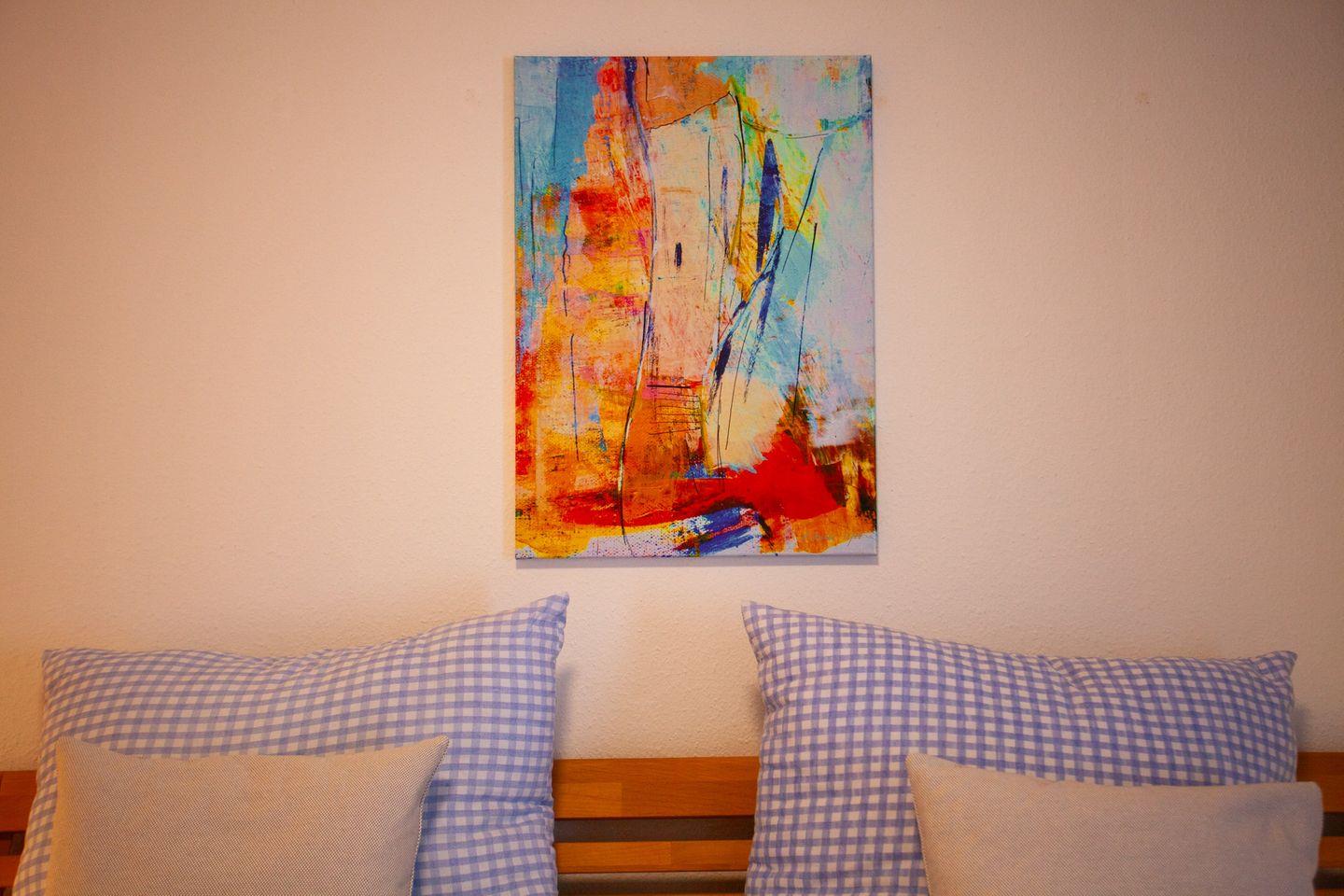 Das Atelier am Hochrhein ist eine besondere Ferienwohnung für alle, die Individualität, Ruhe und eine inspirierende Umgebung schätzen. In dieser ca. 66 Quadratmeter großen Wohnung wohnen Sie nicht nur komfortabel, sondern mitten in einem persönlichen Ambiente, das durch die originalen Kunstwerke des Eigentümers geprägt ist. Jedes Gemälde in der Wohnung stammt aus eigener Hand und verleiht den Räumen einen unverwechselbaren Atelier-Charakter.
