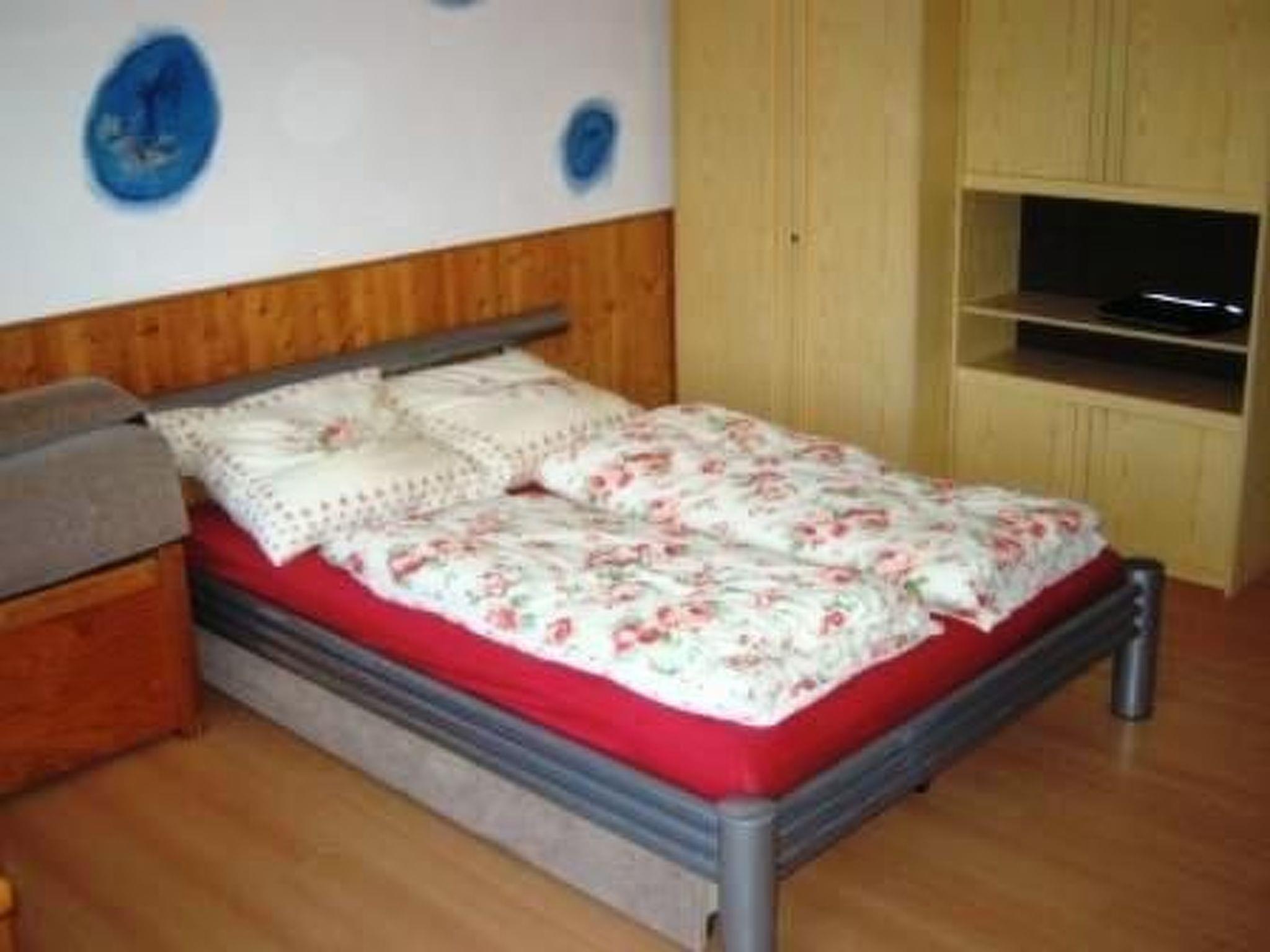 The living/sleeping area has a double bed (140 x 200 cm). There is a table for breakfast and a living area for sitting with two armchairs and another table. In the entrance area there is a small kitchenette with a 2 ring hob, a fridge with freezer compartment and a microwave. The flat also has a bathroom with toilet, shower and washbasin. Television, DVD player with radio are also available.