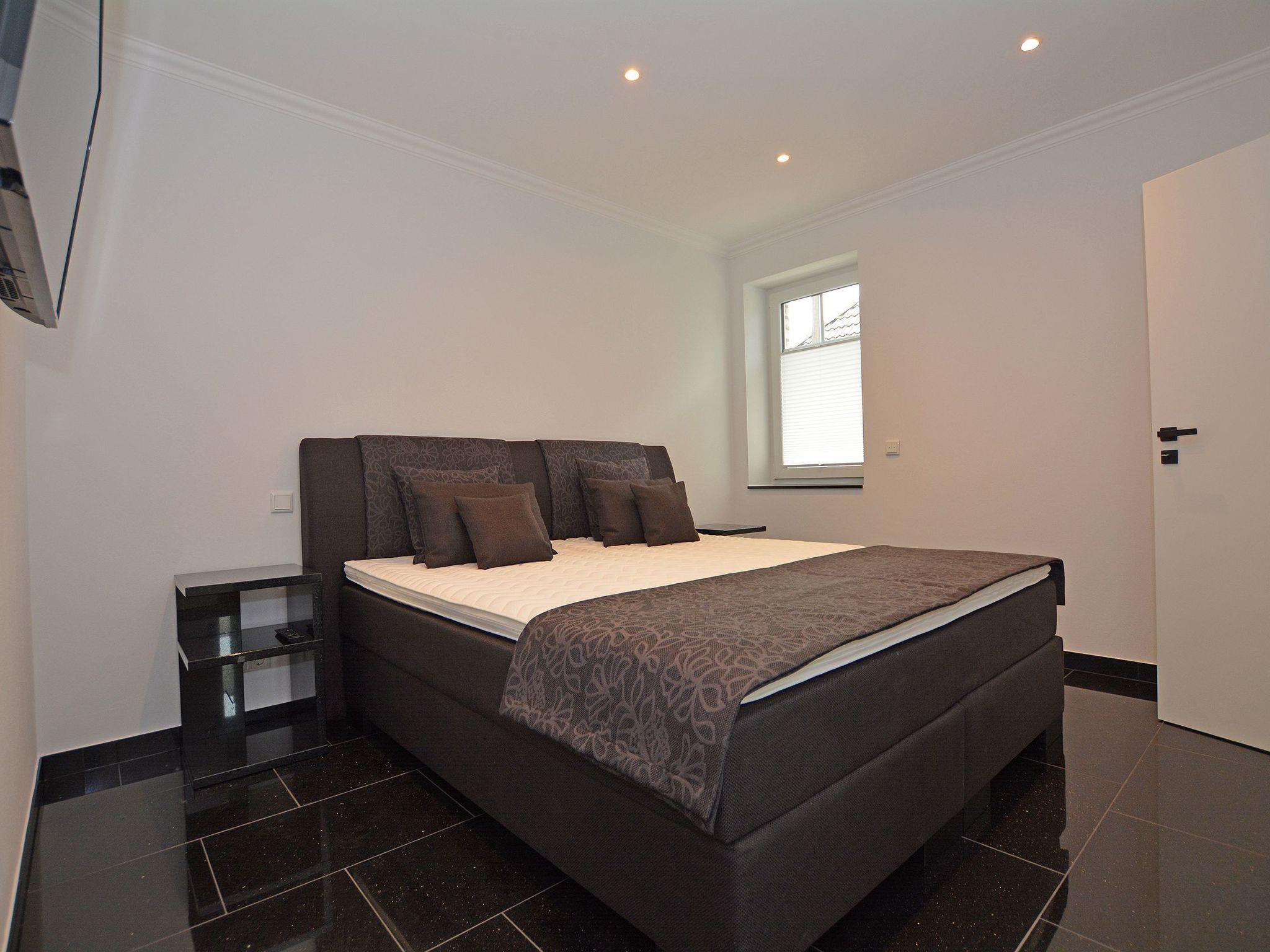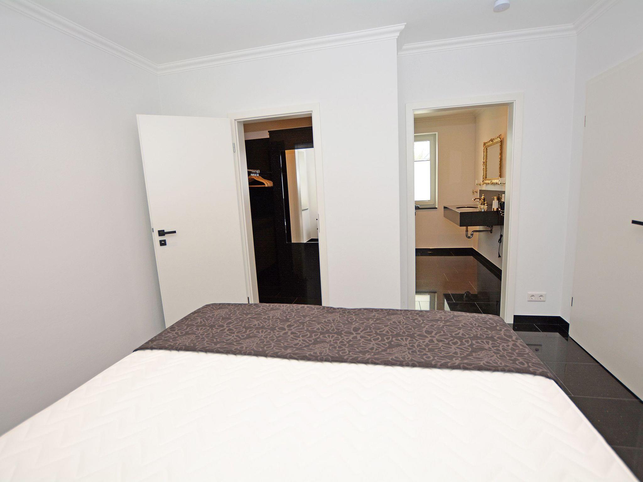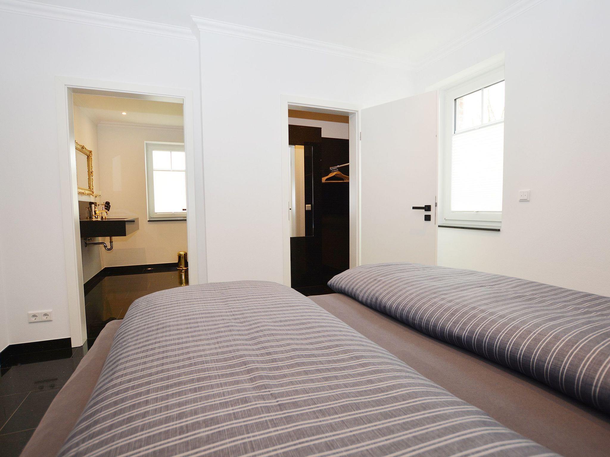 Final cleaning included in the rental price Bed linen included in the rental price Towels included in the rental price Travel cot included in the rental price (optional) High chair included in the rental price (optional) Bedrooms I and II: Box-spring bed (200 * 180 cm) Two elegant bedside tables made of high-quality natural stone Flat-screen TV with internet access Walk-in wardrobe with integrated mirror Safe Each with its own bathroom: Rain shower Hand shower WC Hairdryer/ hairdryer holder Washbasin Built-in wardrobe behind door Mirror Approx. 50 sqm open-plan room Consisting of: A) Living room Leather suite Large TV wall Sideboard Natural stone table B) Dining area Spacious dining table with 6 chairs C) Ultra-modern kitchen Cooking island with tall units Natural stone worktop Built-in appliances: fridge, dishwasher, microwave, oven, coffee machine, induction hob with integrated extractor fan and socket with USB connection.