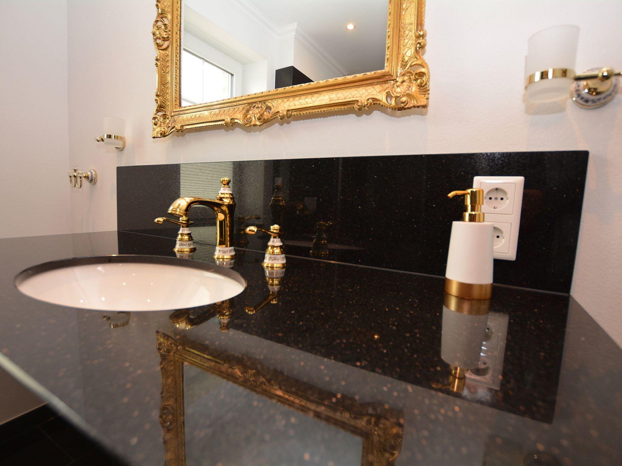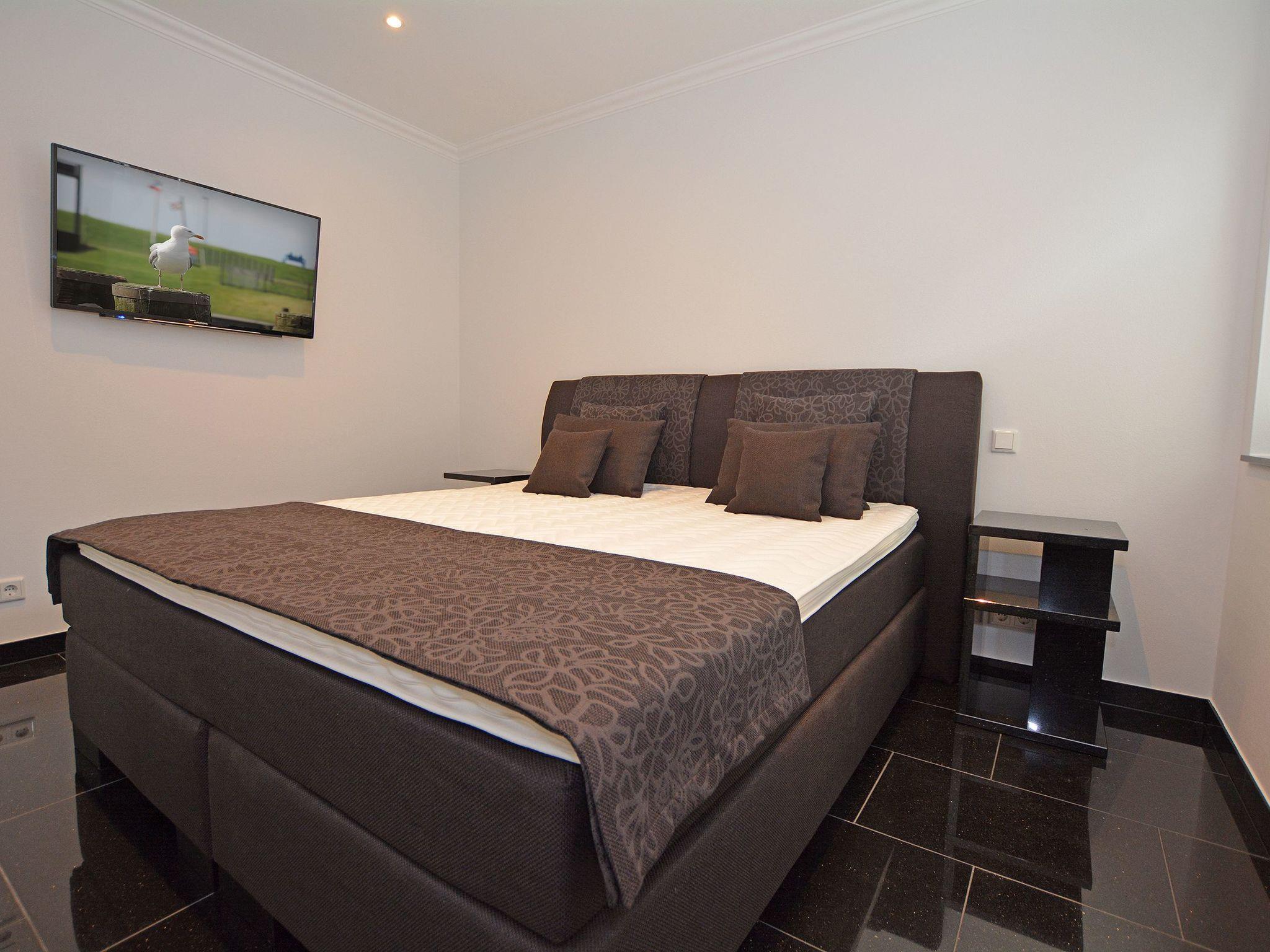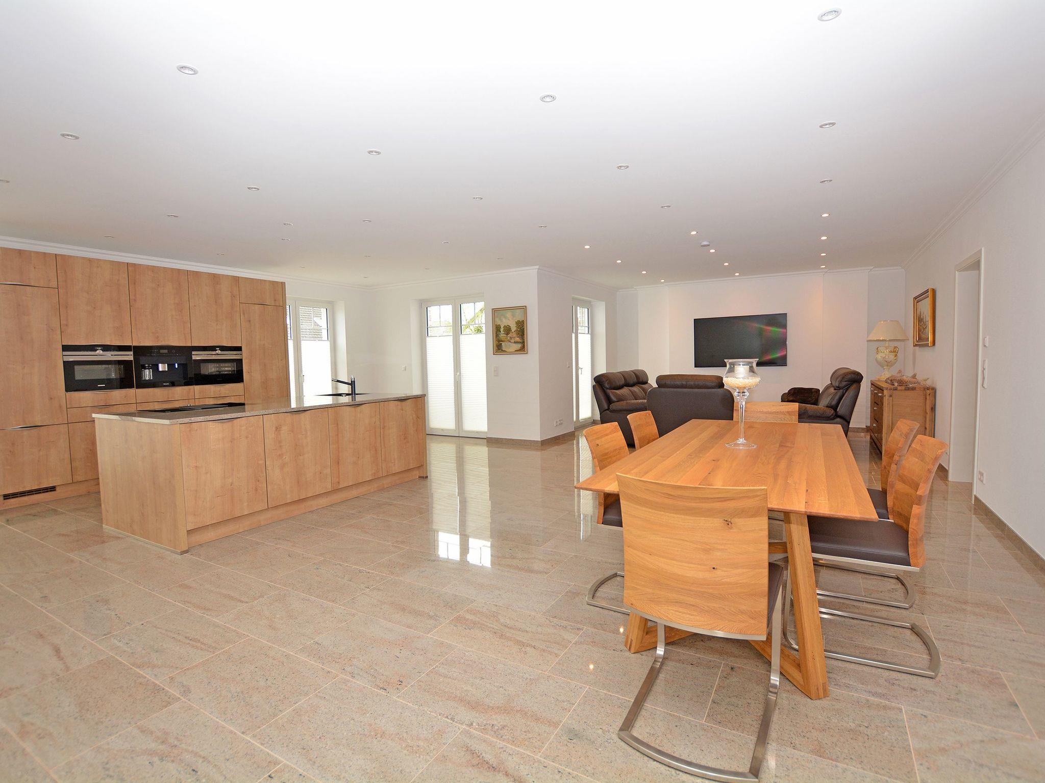 Final cleaning included in the rental price Bed linen included in the rental price Towels included in the rental price Travel cot included in the rental price (optional) High chair included in the rental price (optional) Bedrooms I and II: Box-spring bed (200 * 180 cm) Two elegant bedside tables made of high-quality natural stone Flat-screen TV with internet access Walk-in wardrobe with integrated mirror Safe Each with its own bathroom: Rain shower Hand shower WC Hairdryer/ hairdryer holder Washbasin Built-in wardrobe behind door Mirror Approx. 50 sqm open-plan room Consisting of: A) Living room Leather suite Large TV wall Sideboard Natural stone table B) Dining area Spacious dining table with 6 chairs C) Ultra-modern kitchen Cooking island with tall units Natural stone worktop Built-in appliances: fridge, dishwasher, microwave, oven, coffee machine, induction hob with integrated extractor fan and socket with USB connection.