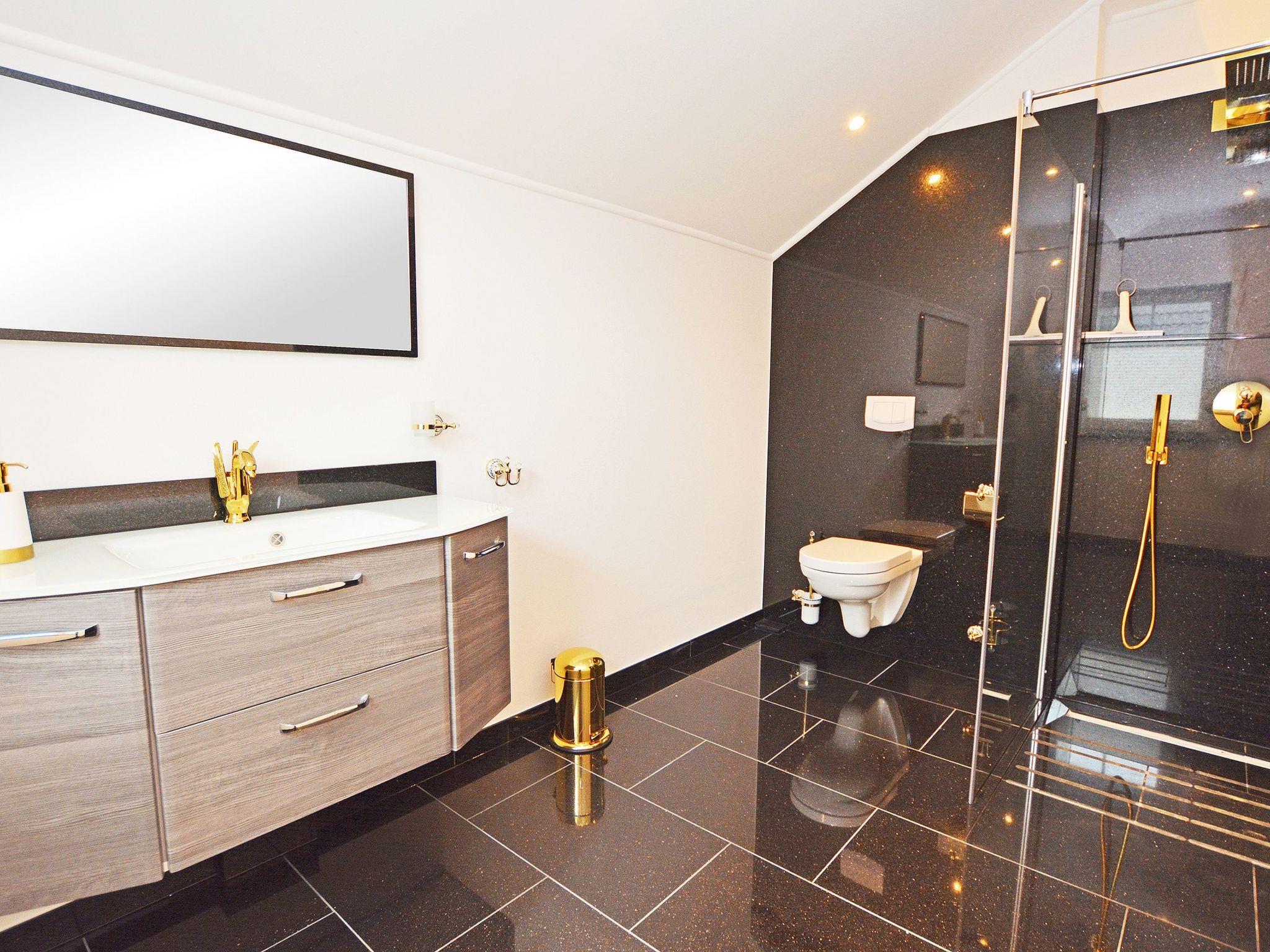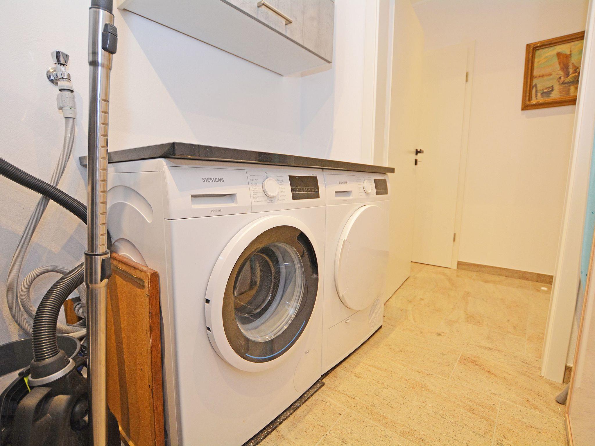 HWR: Washing machine + tumble dryer Iron + ironing board Travel cot + baby high chair stored there Hallway/ entrance: Cloakroom with mirror Terrace/ garden: Furnished and paved terrace with fenced garden Highlights of the holiday flat: 1. all rooms are laid with high-quality natural stone 2. Entire flat has underfloor heating, electric external blinds and internal pleated blinds 3. all bedrooms and living room have their own TV with internet access 4. entire flat is elegantly and ultra-modernly furnished 5. spacious and light-flooded rooms 6. furnished and paved terrace with its own fenced garden 7. decalcification system