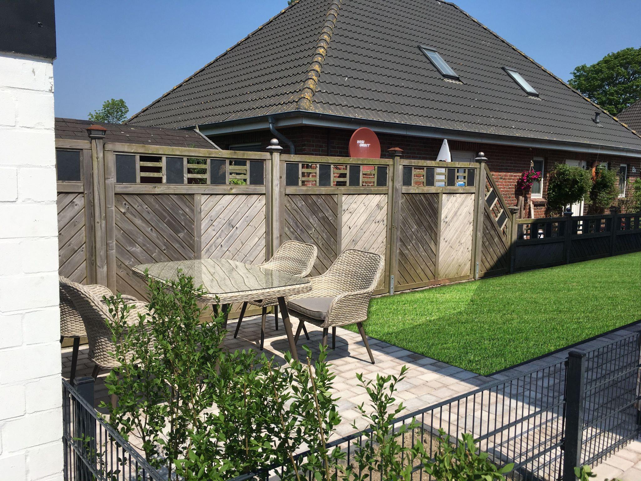 Terrace/garden: Furnished and paved terrace with fenced garden