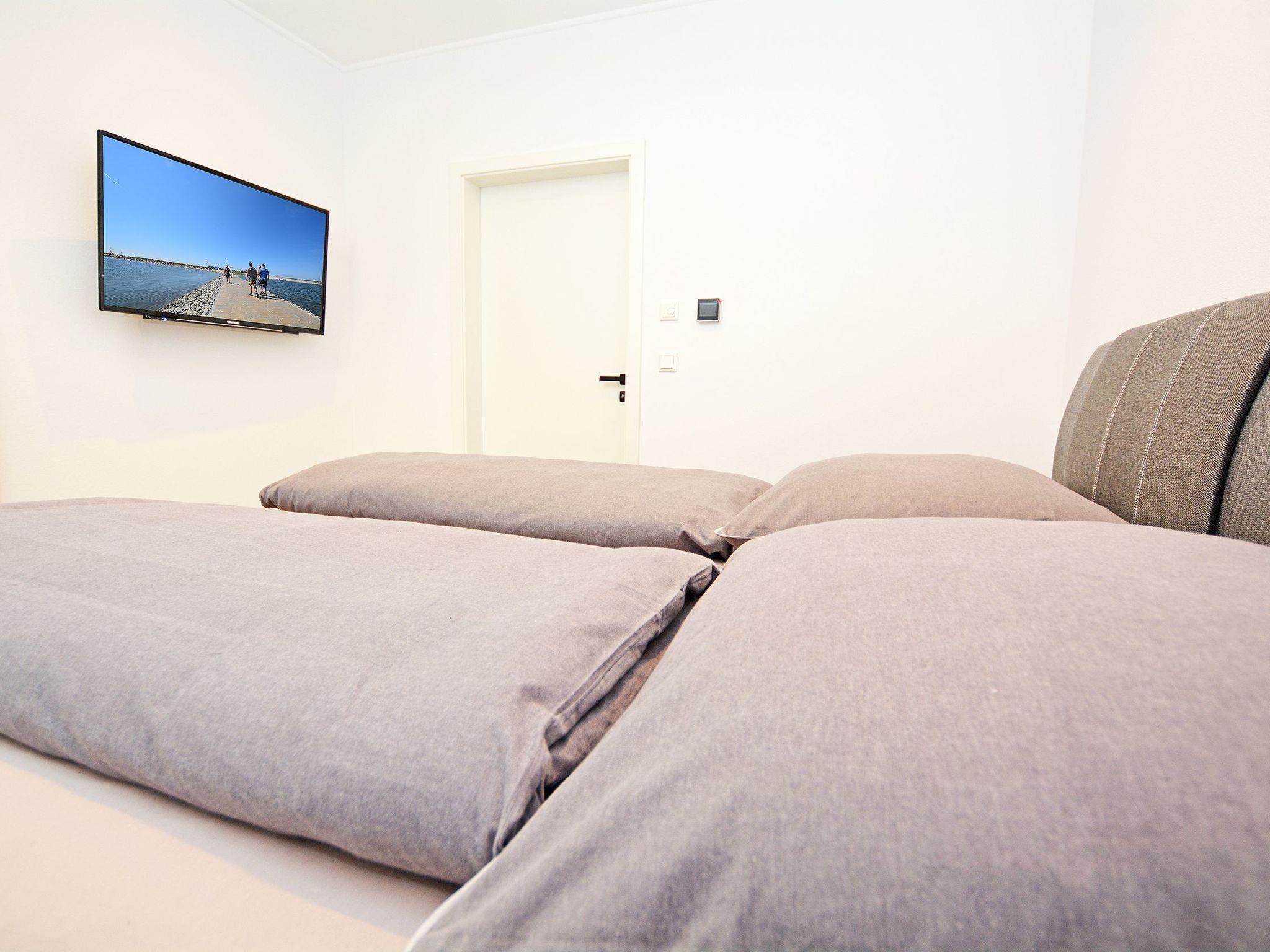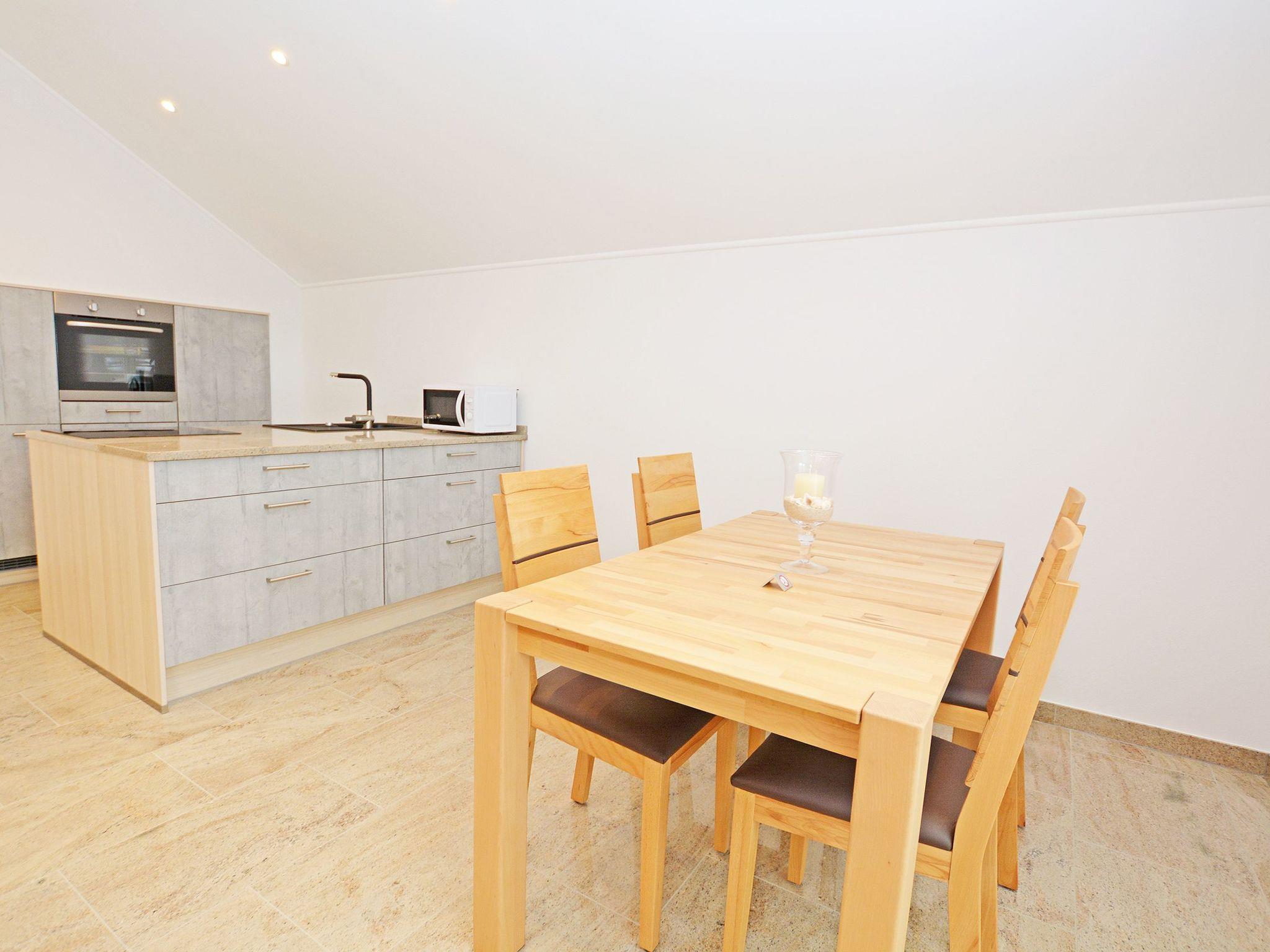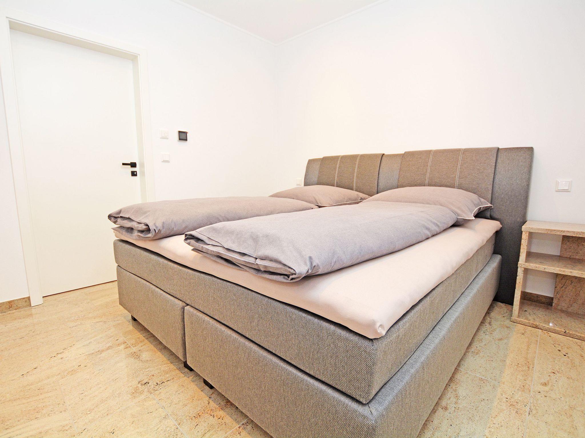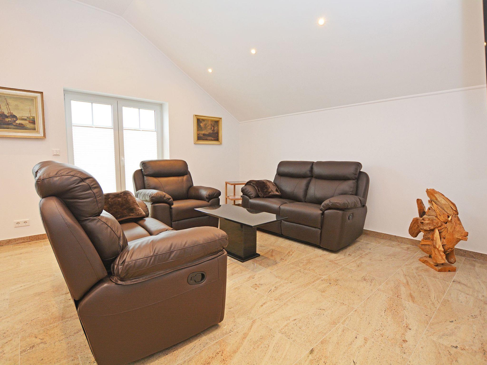 Final cleaning included in the rental price Bed linen included in the rental price Towels included in the rental price Travel cot included in the rental price (optional) High chair included in the rental price (optional) Bedrooms I and II: Box spring bed (200 * 180 cm) Two elegant bedside tables made of high-quality natural stone TV flat screen TV with internet access Wardrobe One bathroom: Rain shower Hand shower WC Hairdryer/ hairdryer holder Washbasin Mirror Approx. 30 sqm open-plan room Consisting of: A) Living room Leather suite TV Natural stone table B) Dining area Spacious dining table with 4 chairs C) Modern kitchen Cooking island with tall units Natural stone kitchen worktop Built-in appliances: Refrigerator, dishwasher, microwave, oven, coffee machine, hob Silgranit sink, kettle, toaster, crockery, towels and household items are available for daily needs.